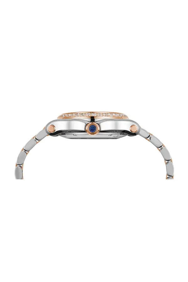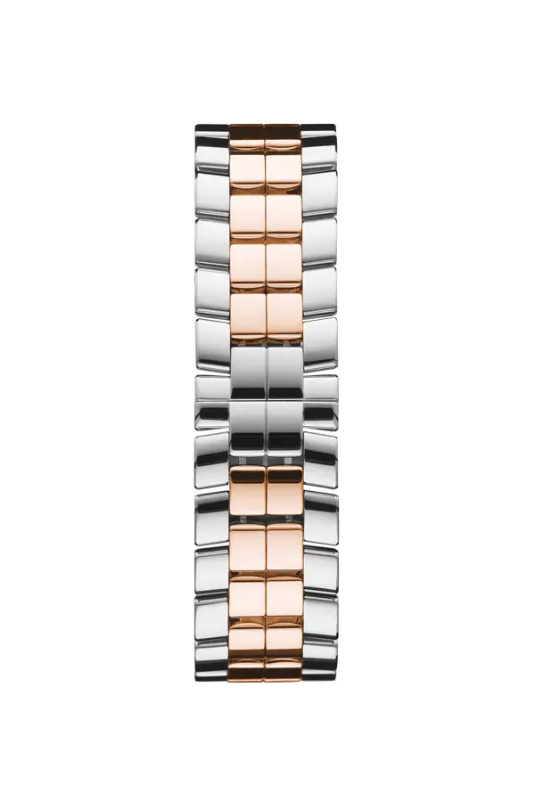 The bicolor bracelet – a graceful blend of steel and 18kt rose gold – is finished with a folding clasp, offering both security and comfort.