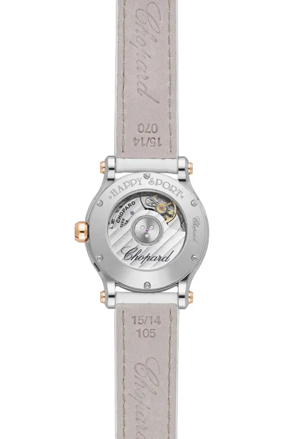The Chopard Happy Sport 278573-6020 is a masterful fusion of Swiss watchmaking precision and feminine elegance. Its 30 mm round case, crafted from stainless steel and 18k rose gold, offers a captivating contrast between cool sophistication and warm golden tones.