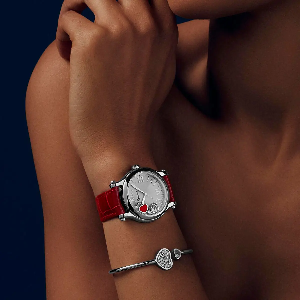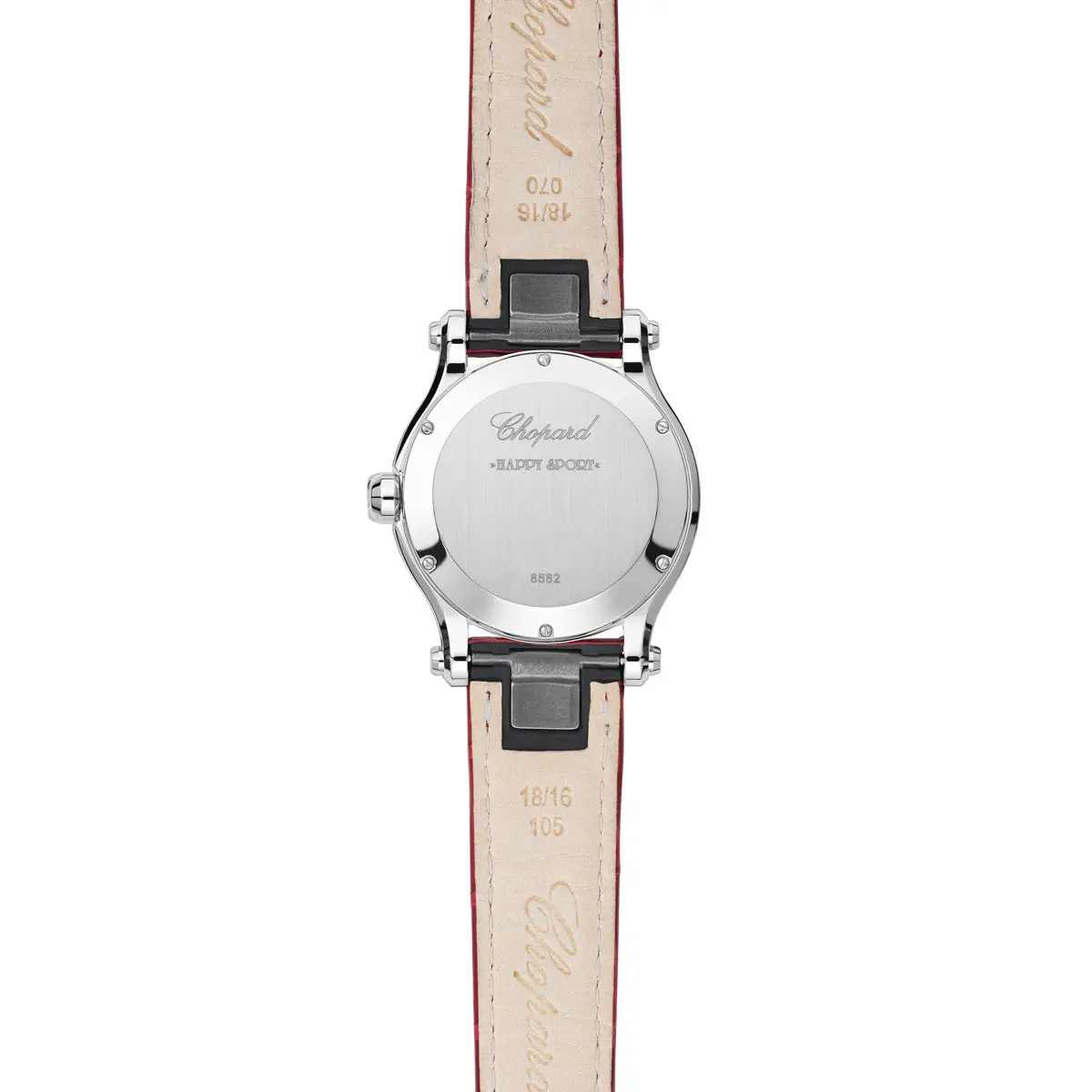 The Chopard Happy Sport 278582-3005 is a celebration of feminine strength and freedom - in a design that is bold, elegant and utterly unmistakable. This variant combines the classic elegance of the Happy Sport range with a passionate red accent that immediately catches the eye.