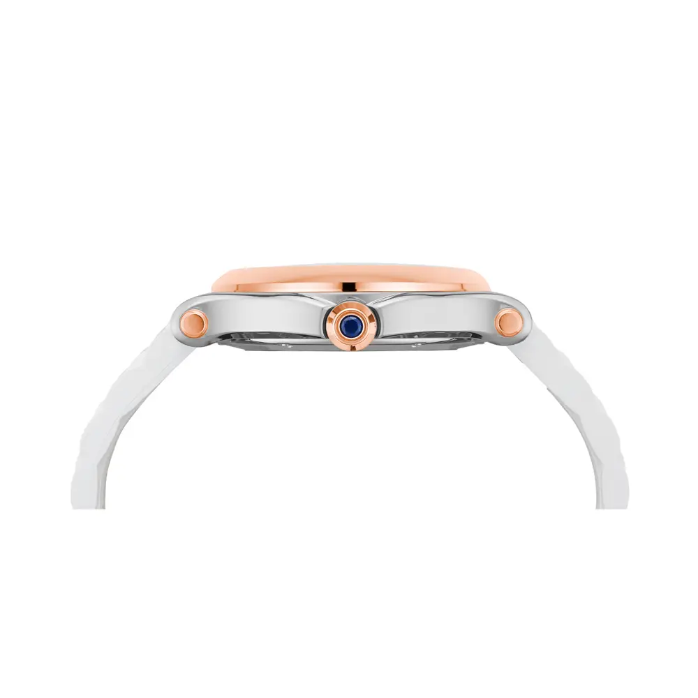 The Chopard Happy Sport 278582-6001 embodies freshness, luxury and playful elegance – the perfect watch for a woman who values style, lightness and refined craftsmanship. This iconic creation from the Happy Sport collection blends stainless steel and 18k rose gold, a pure white design, and the brand’s signature free-floating diamonds, symbolizing joy and freedom.