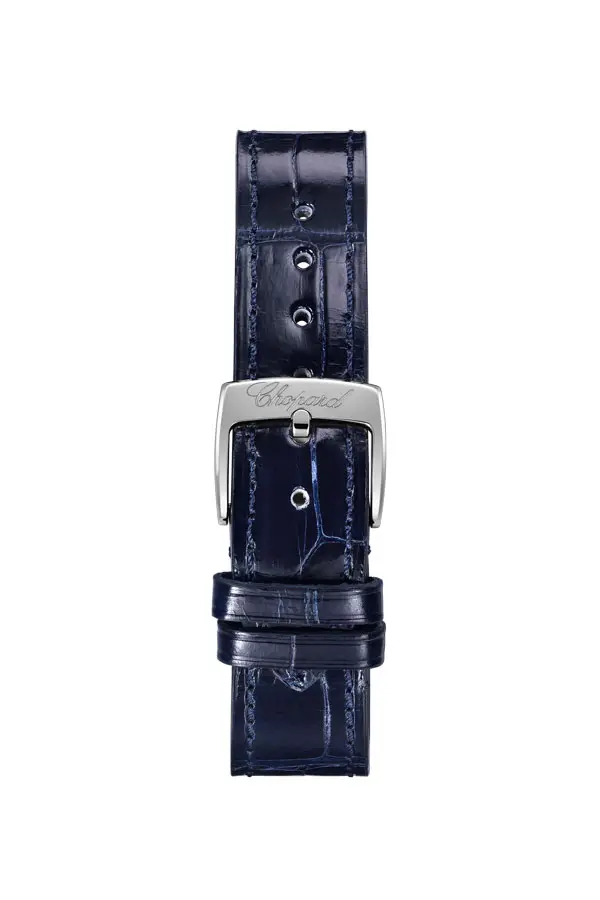 At its heart beats the automatic mechanical movement Chopard 09.01-C, offering a 42-hour power reserve and operating at 25,200 vibrations per hour (3 Hz). With 27 jewels, it guarantees smooth, reliable performance. A blue alligator-leather strap adds an elegant contrast, while 30-meter water resistance ensures everyday practicality. The Chopard Happy Sport 278608-6003 is a statement of modern femininity, where technical mastery, luxury and natural grace meet in perfect balance.