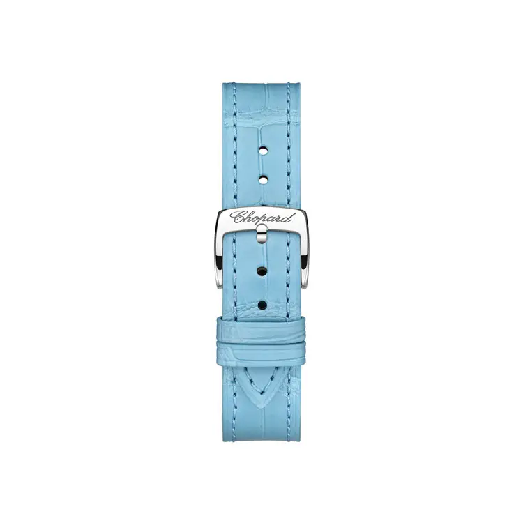 Inside beats a precise Swiss mechanical self-winding movement, ensuring reliable performance and smooth operation. This caliber reflects Chopard's dedication to fine watchmaking, balancing performance, beauty, and craftsmanship.