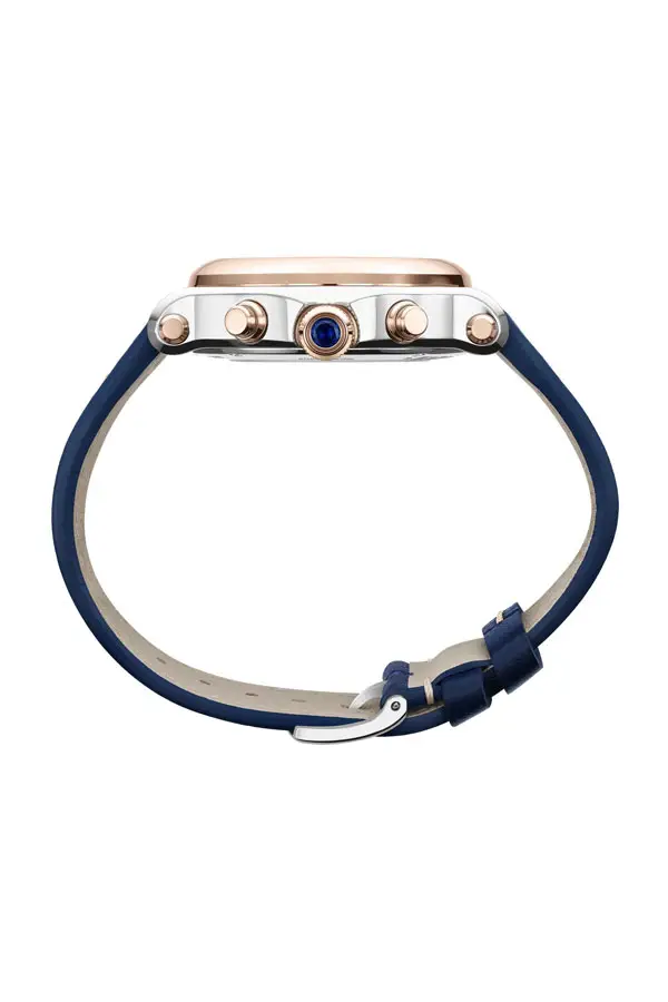 The blue leather strap with a pin buckle ensures both comfort and elegance. With 3 ATM (30 meters) water resistance, it's perfectly suited for everyday sophistication.