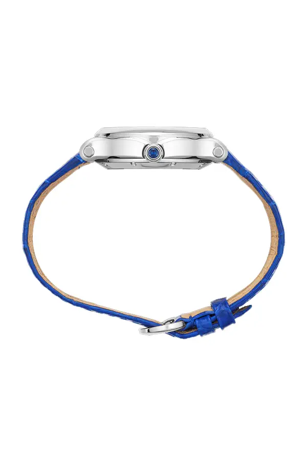 The highlight is a blue alligator leather strap, adding both vibrancy and refinement. A classic pin buckle ensures comfort and secure wear.