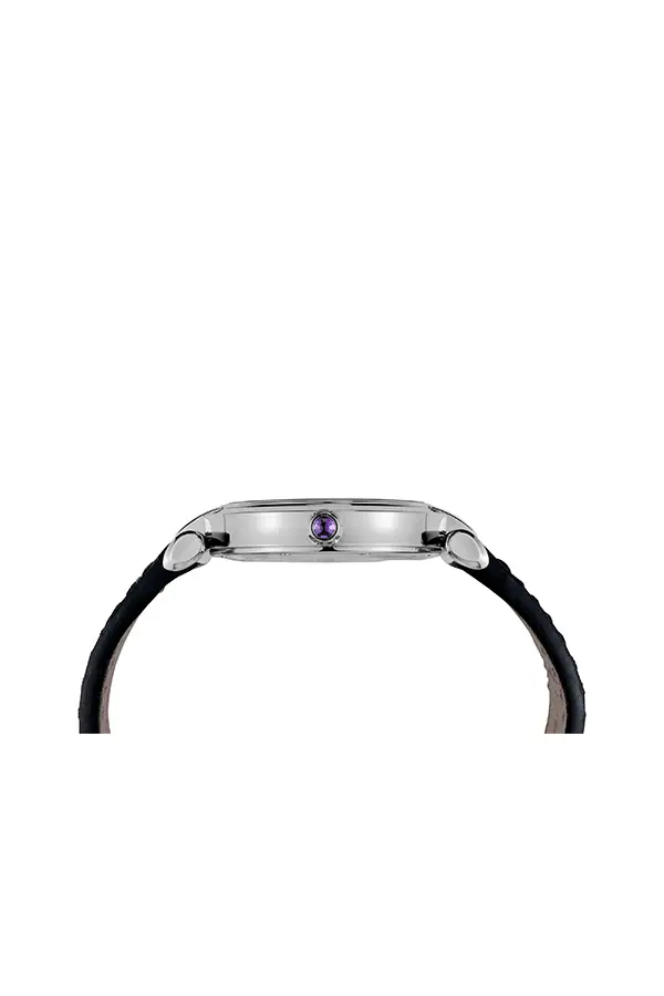 The 36 mm polished stainless-steel case highlights the watch’s pure, harmonious lines. Beneath the scratch-resistant sapphire crystal lies a mother-of-pearl dial with delicate engravings and Roman numerals marking the cardinal points. The crown is adorned with a signature amethyst cabochon, adding a subtle royal touch characteristic of the Imperiale collection.