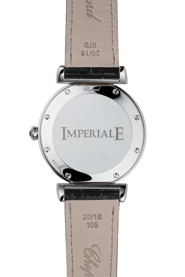 The hallmarks of the Imperiale collection are the Roman numerals on the dial, the finely cut crowns and crowns with amethyst or other precious stones, as well as the elegant arabesque details reminiscent of imperial insignia. The dials are often decorated with mother-of-pearl, guilloche engravings or diamonds, adding a touch of luxury and feminine refinement to each model.