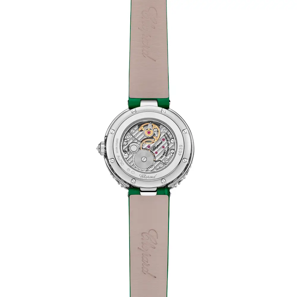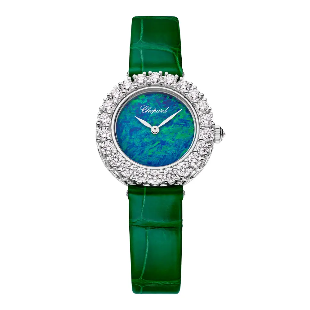 Inside beats the hand-wound mechanical movement Chopard Calibre 10.01-C with a 45-hour power reserve, ensuring accuracy and reliability. The delicate mother-of-pearl dial shimmers beautifully under changing light, while the sapphire crystal with anti-reflective coating guarantees perfect legibility. The model offers 30-metre water resistance, providing everyday durability and luxury.
