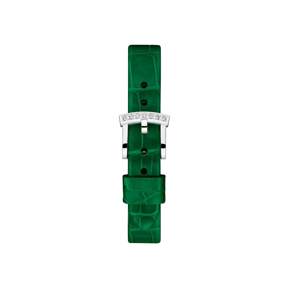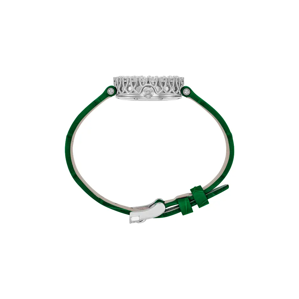 The design is completed by a glossy green leather strap, adding a fresh and modern touch to the timeless radiance of diamonds and white gold. This striking contrast gives the watch a distinctive personality. L'Heure du Diamant Round 13A178-1316 is not merely a timepiece — it is a jewel of eternal elegance, craftsmanship, and feminine grace.