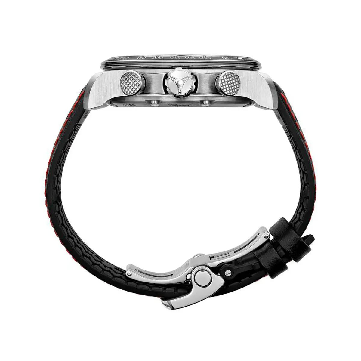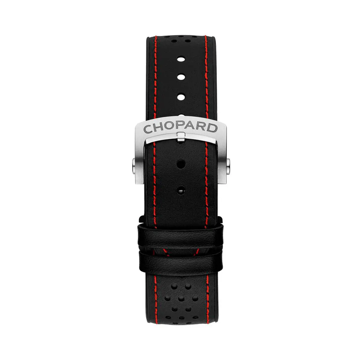 At its heart beats a COSC-certified automatic movement with a 48-hour power reserve, guaranteeing precision and reliability. The black perforated rubber strap, reminiscent of racing tyres, ensures both comfort and style. With water resistance up to 100 m (10 ATM), Chopard Mille Miglia 2021 Race Edition stands as a symbol of performance, elegance, and pure racing passion.