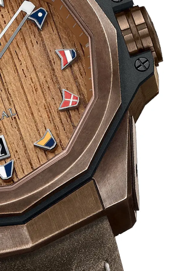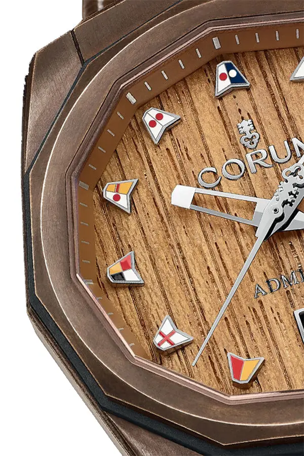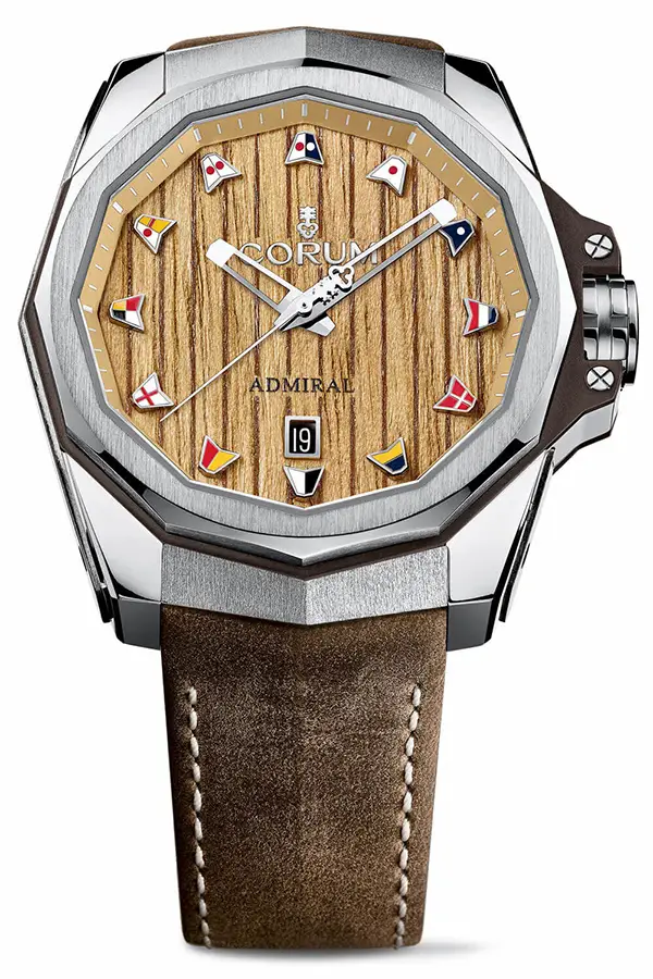 The Admiral collection from Corum is a celebration of the sea, sportsmanship and courage. First introduced in 1960, it quickly became one of the brand's most distinctive models. The Admiral is known for its 12-sided case and the distinctive coloured nautical flags on the dial that serve as hour indexes - a detail that references the international signal alphabet used in the maritime industry.
