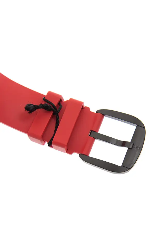 With water resistance to 10 ATM / 100 meters, this watch is suitable for everyday wear and leisure activities. The sporty and stylish red rubber strap contrasts beautifully with the dark case and is secured with a comfortable deployant clasp for safe and comfortable wear.