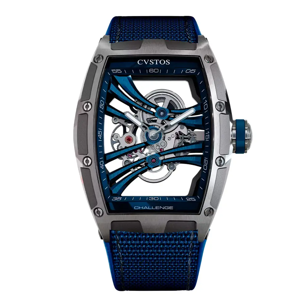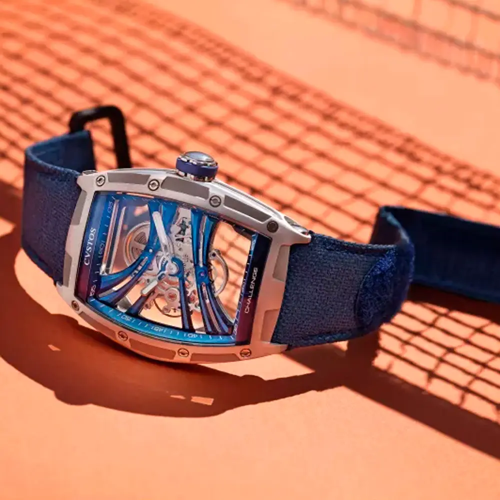 At its core lies the skeletonized mechanical movement CVS610 with an impressive 70-hour power reserve. Blue PVD-treated bridges, meticulous hand-finishing, and visible mechanics showcase the brand’s technical artistry. Sapphire crystal with anti-reflective coating, a Grade 5 titanium screw-down crown, and 100 m water resistance ensure both durability and elegance.