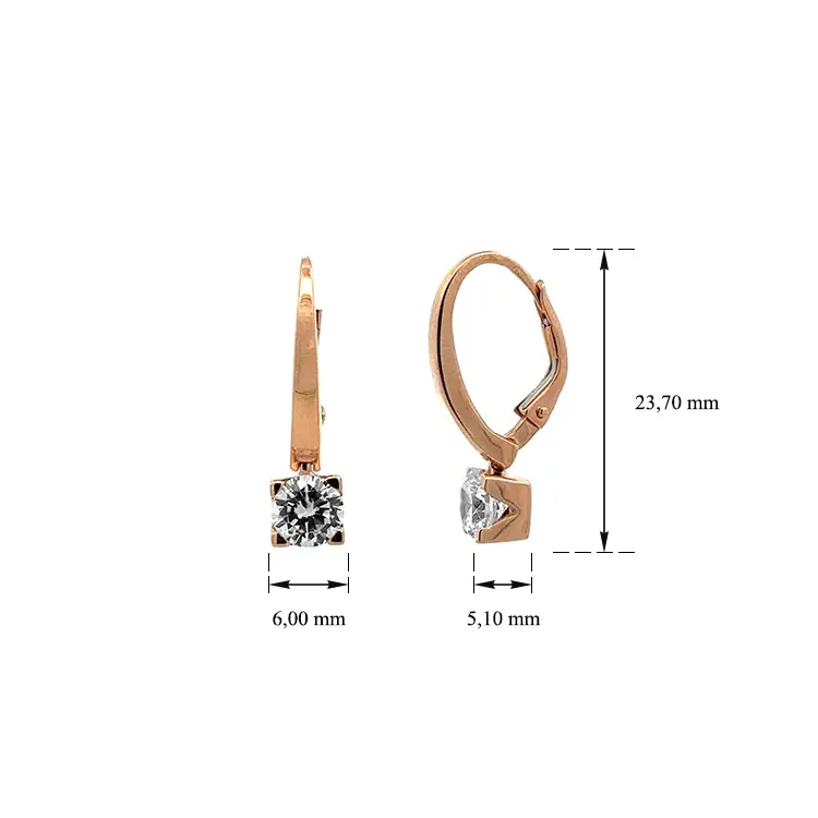 Dangle earrings with pink gold zircons