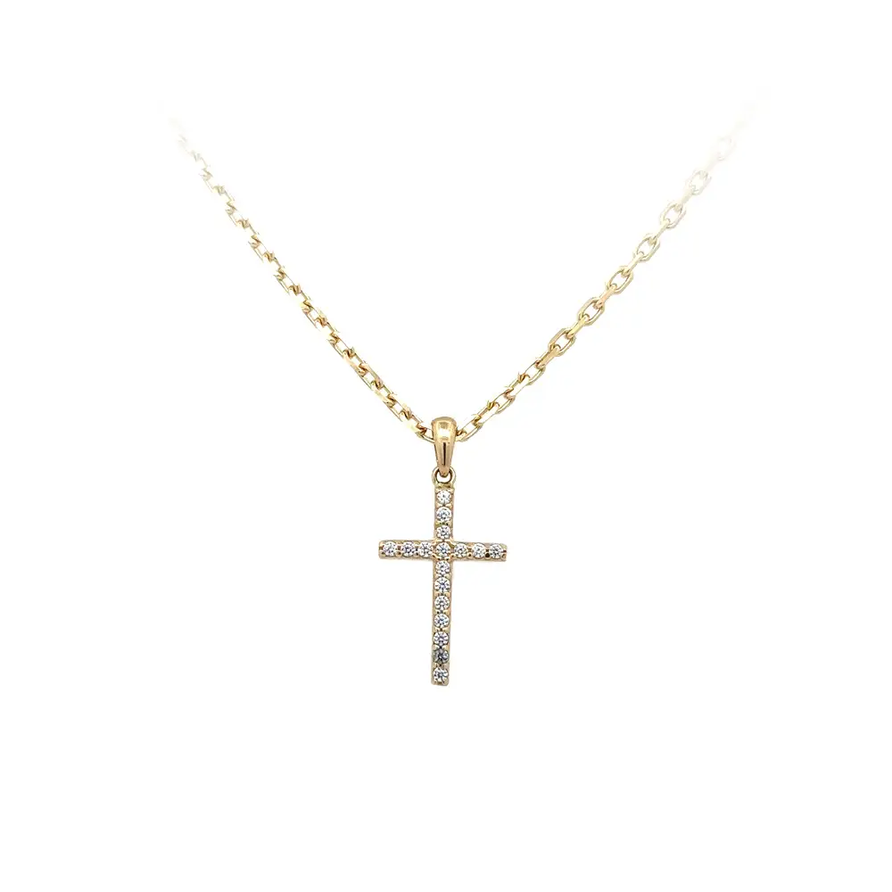 Double-sided Gold Cross with Black and White Zircons