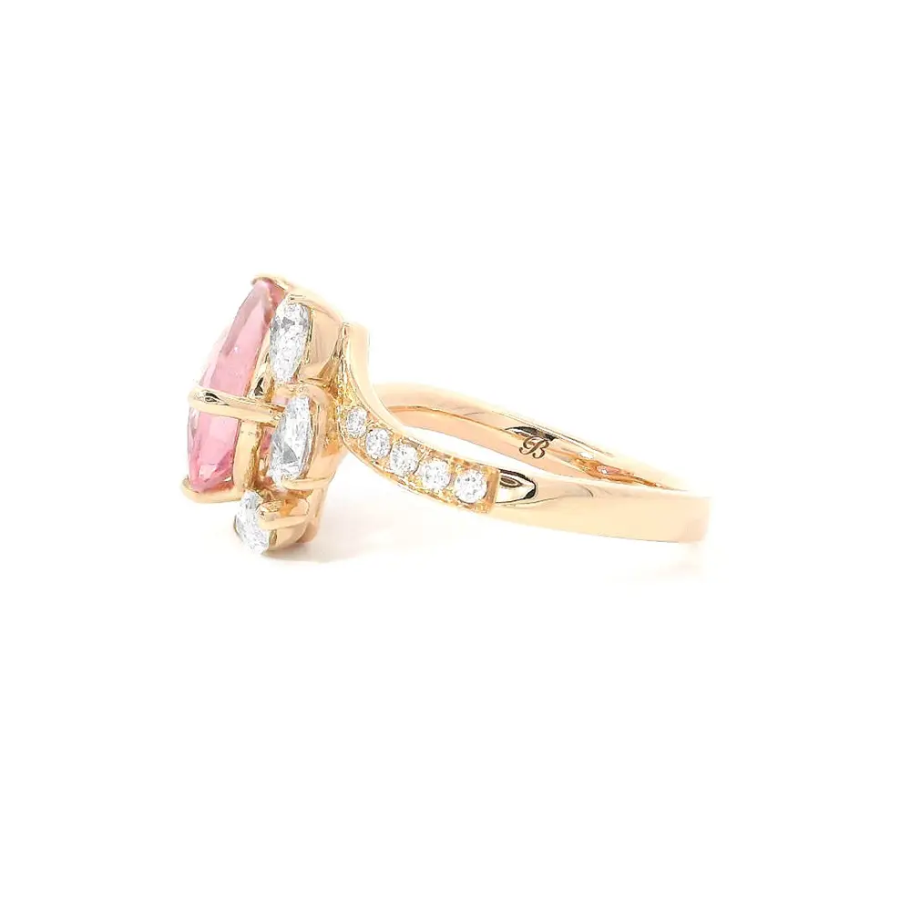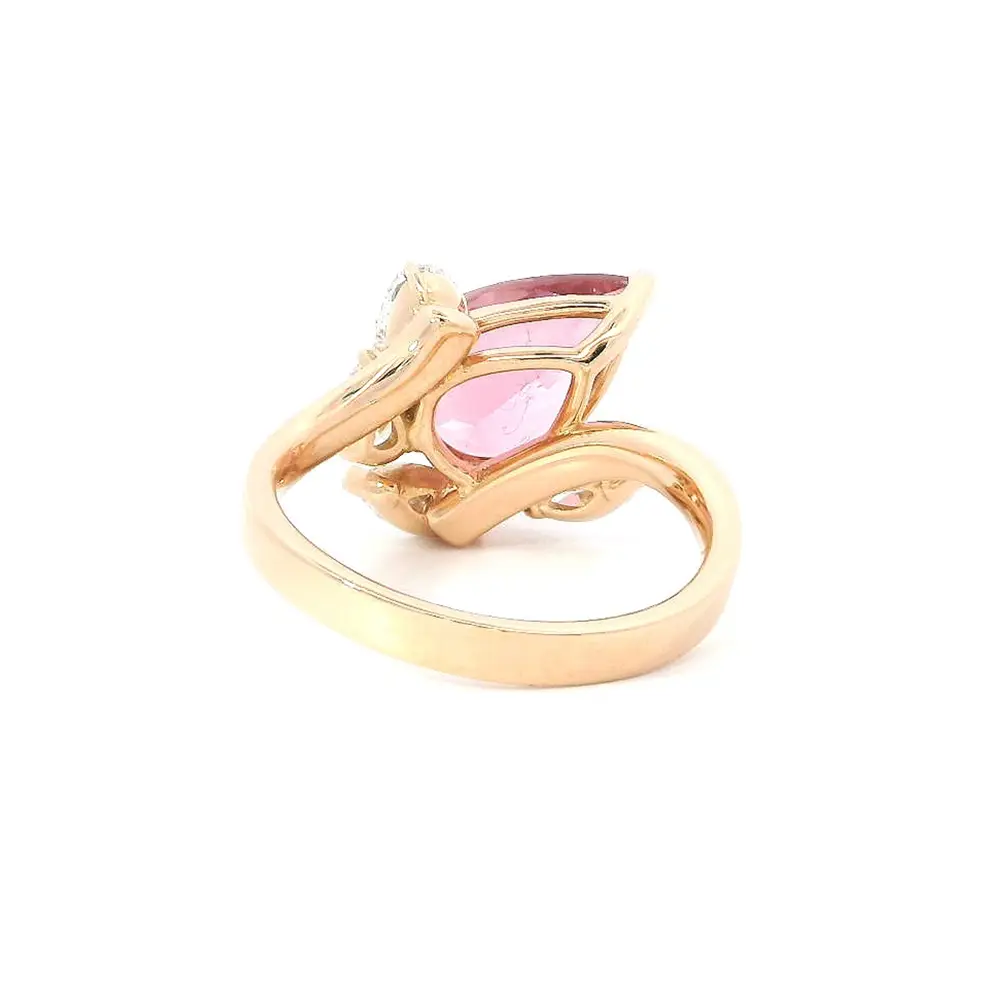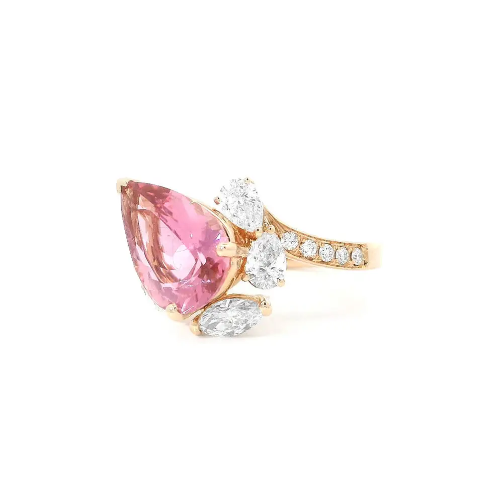 Drop Shaped Pink Tourmaline Ring with Shining Diamonds