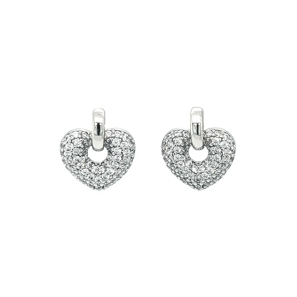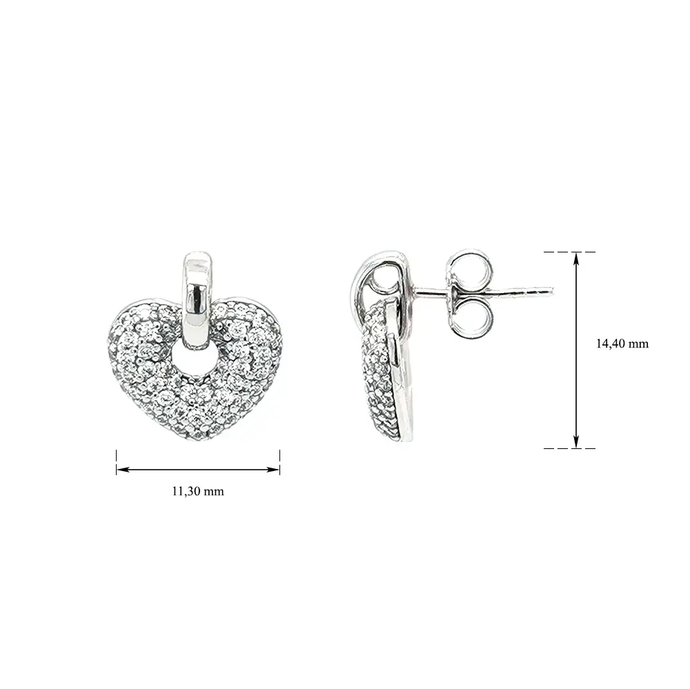 Earrings Heart with Zircones in White Gold