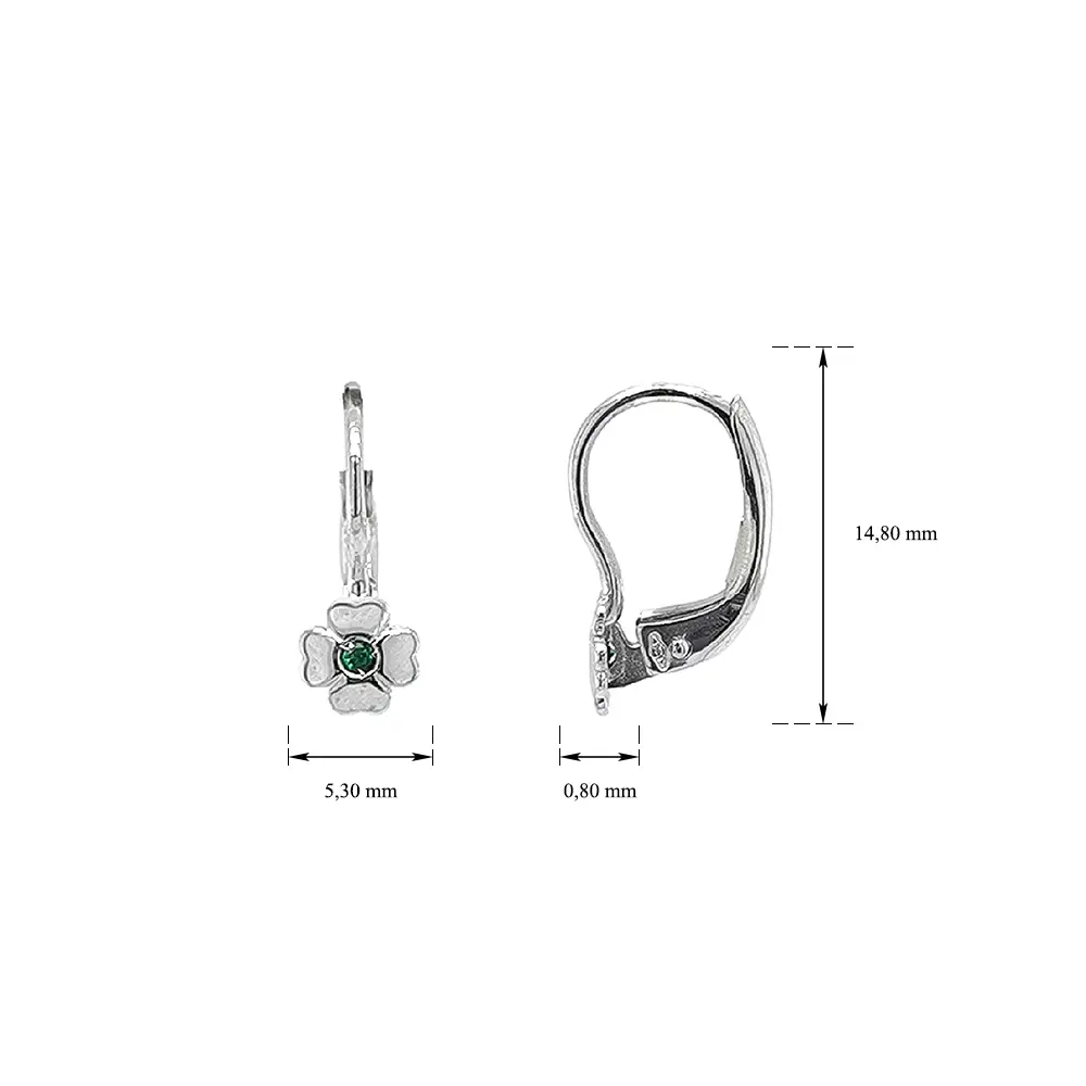 Earrings Quatrefoil with White Gold Emeralds