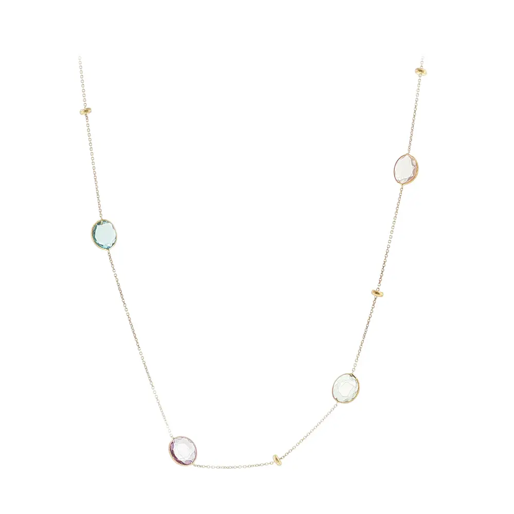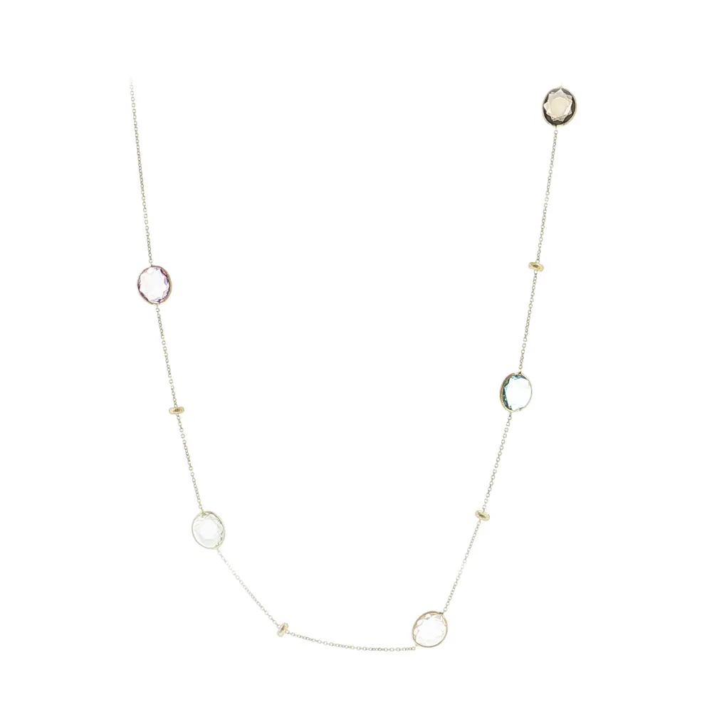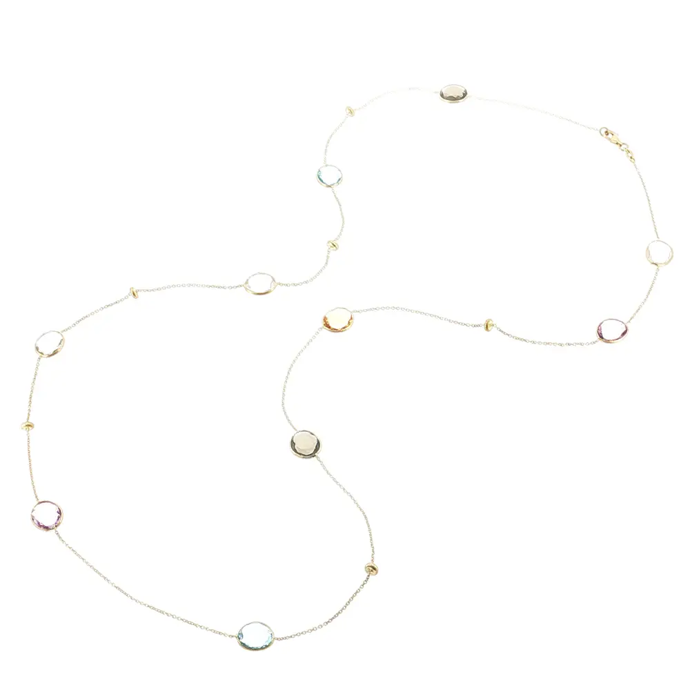 Elegant 14k gold necklace with multicolored stones