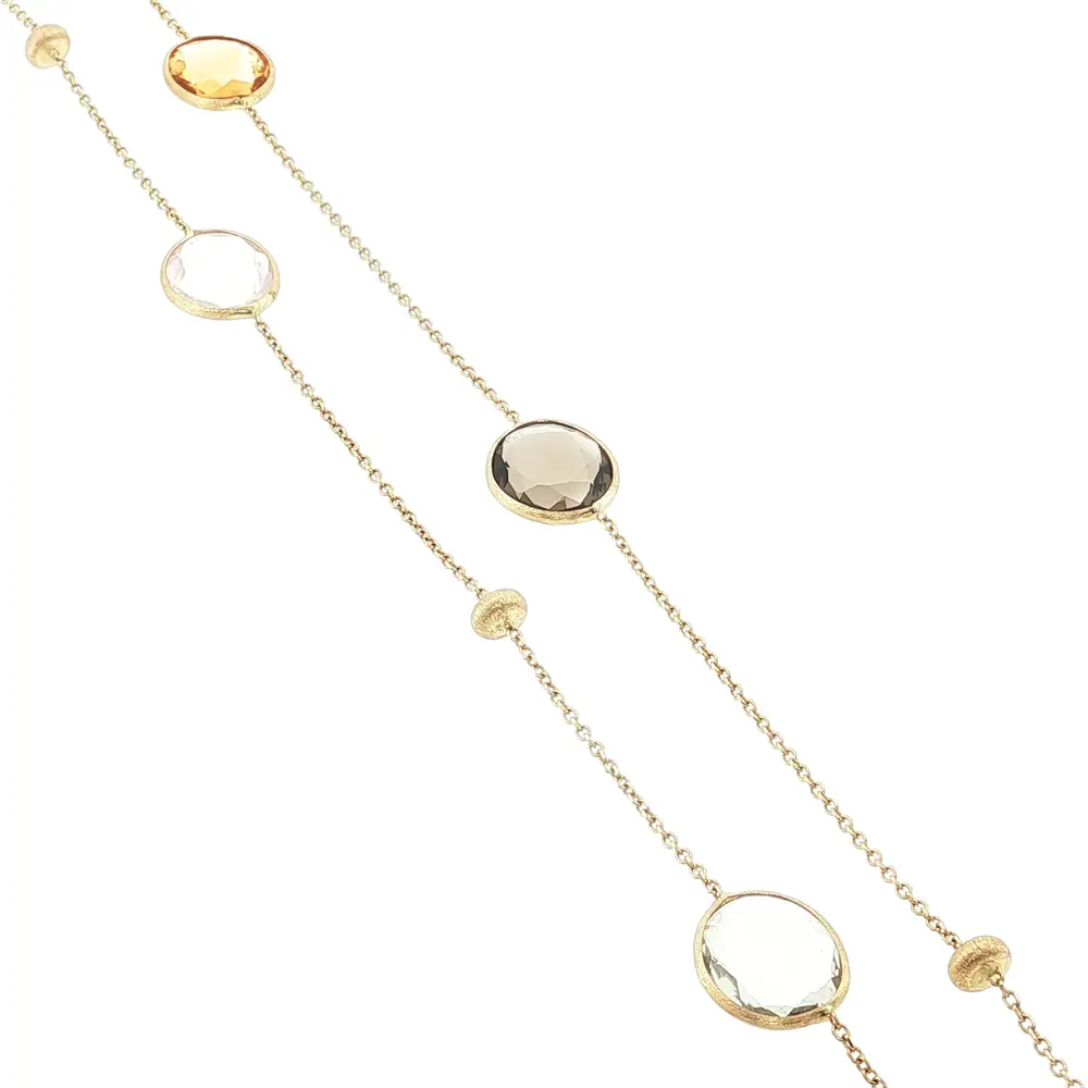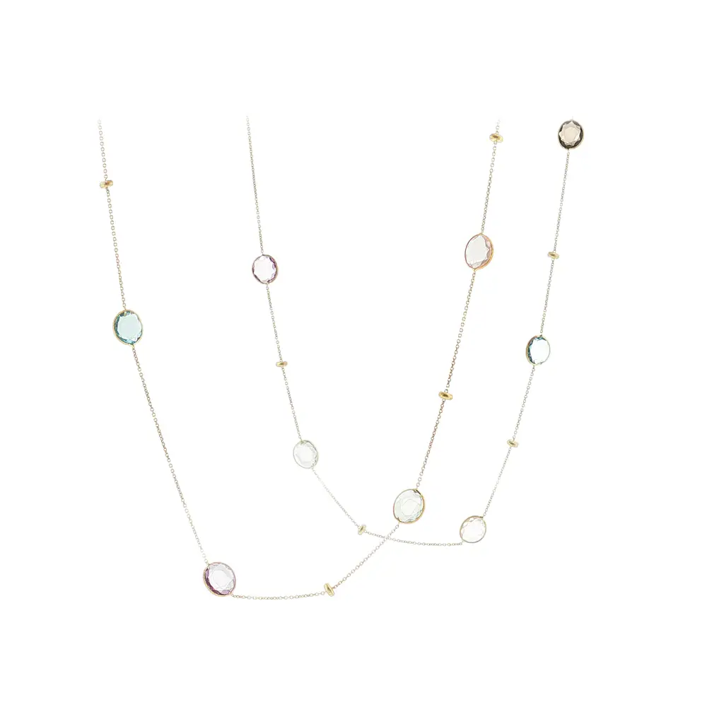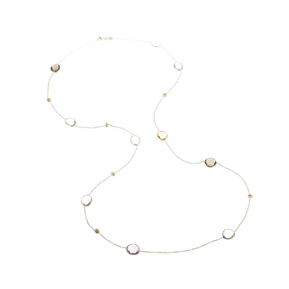 This gold necklace with multicolored stones is a perfect choice as a stylish accessory or an original gift. High-quality craftsmanship and real gold ensure durability and lasting shine for any occasion.