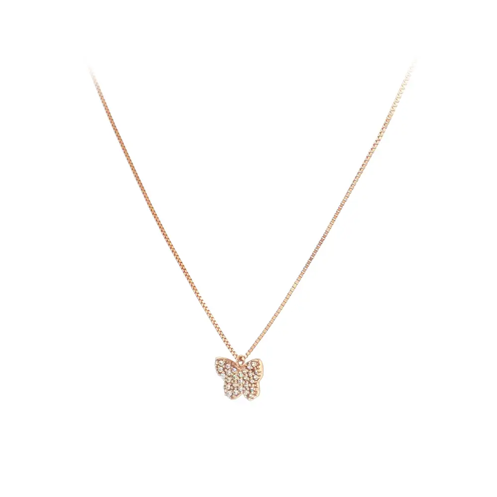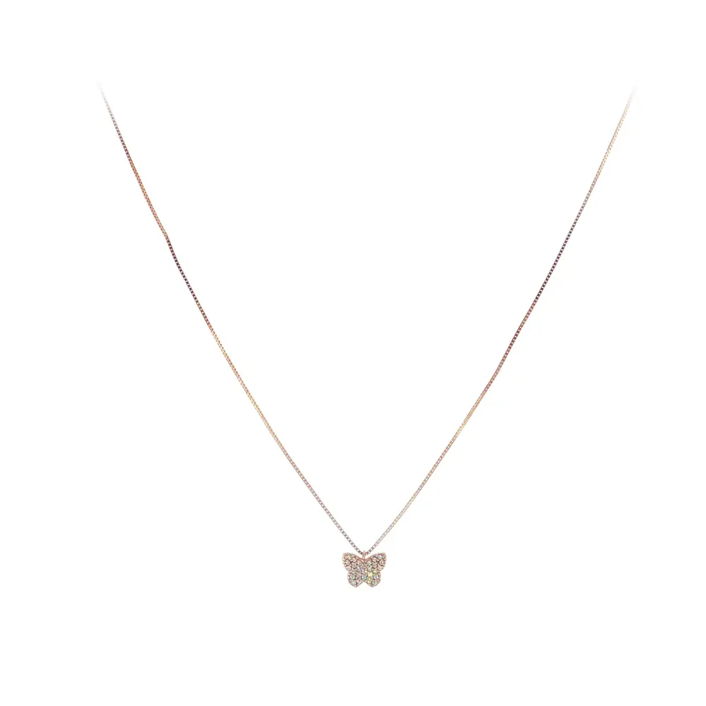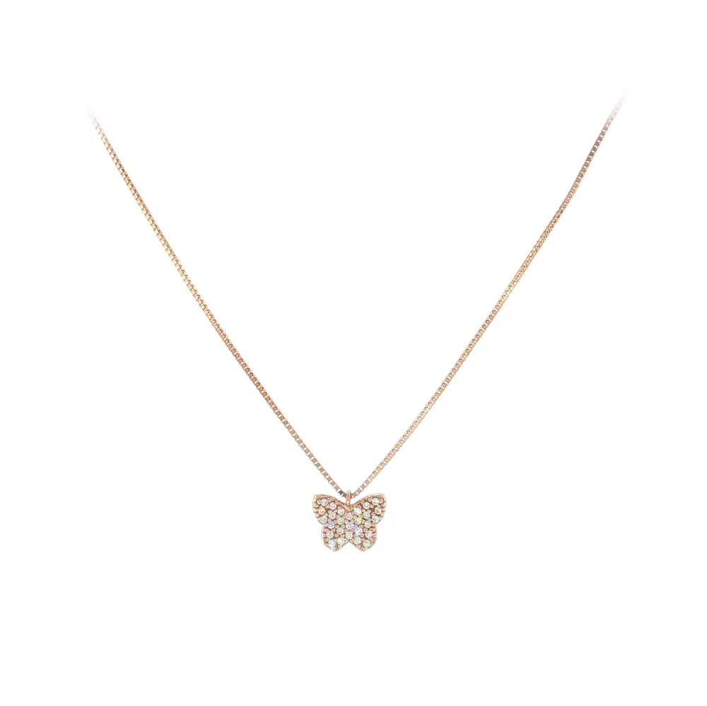 Elegant rose gold necklace with butterfly and zircon stones