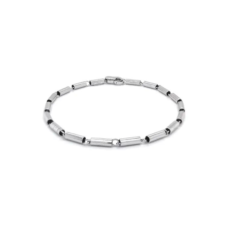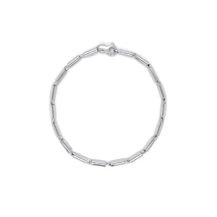 This refined bracelet is expertly crafted from 14kt white gold (585/1000), featuring a high-polish finish that reflects light with a radiant, noble gleam. With a width of 3.00 mm and a length of 21.5 cm, it offers an elegantly balanced silhouette — the perfect statement for those who appreciate subtle yet stylish jewelry.