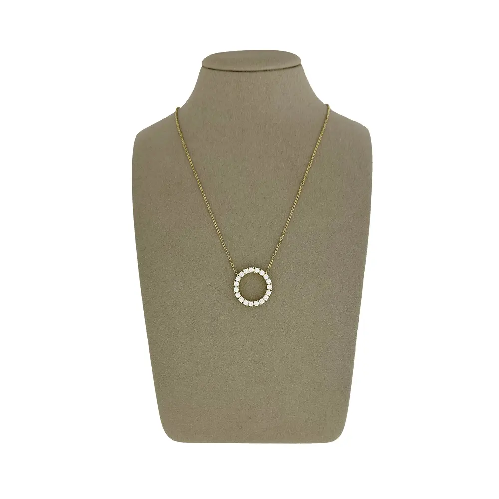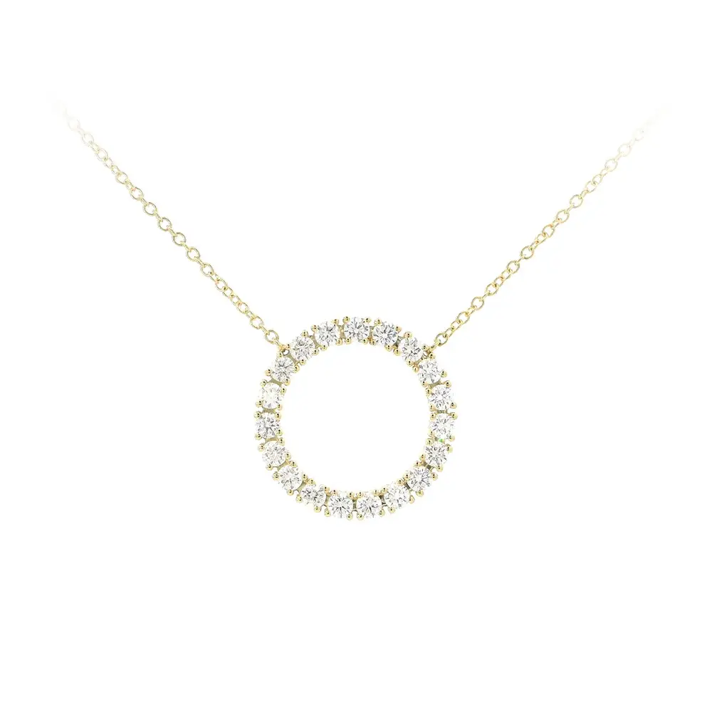 This beautiful necklace is a combination of elegance, luxury and precision workmanship. Crafted from 18k gold, its delicate 42cm chain adds lightness and comfort when worn. The dominant element of the jewellery is the circular pendant, which is adorned with diamonds weighing a total of 1.20 ct in G colour and VS clarity, providing exceptional sparkle and a sophisticated look.