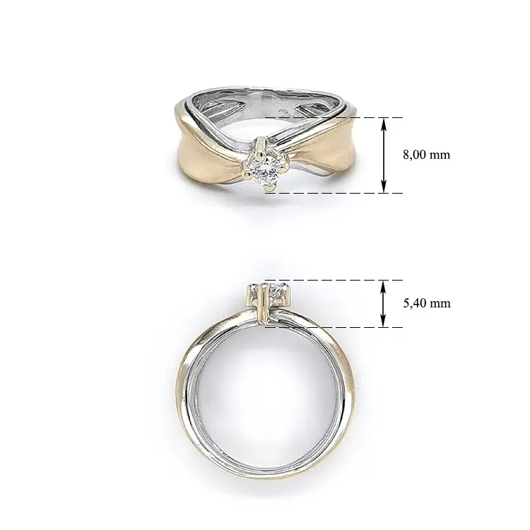 Engagement Ring with Zircon made of Combined Gold