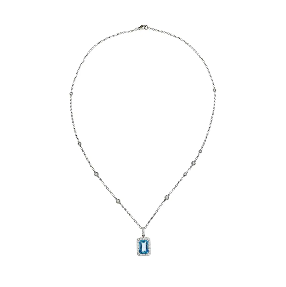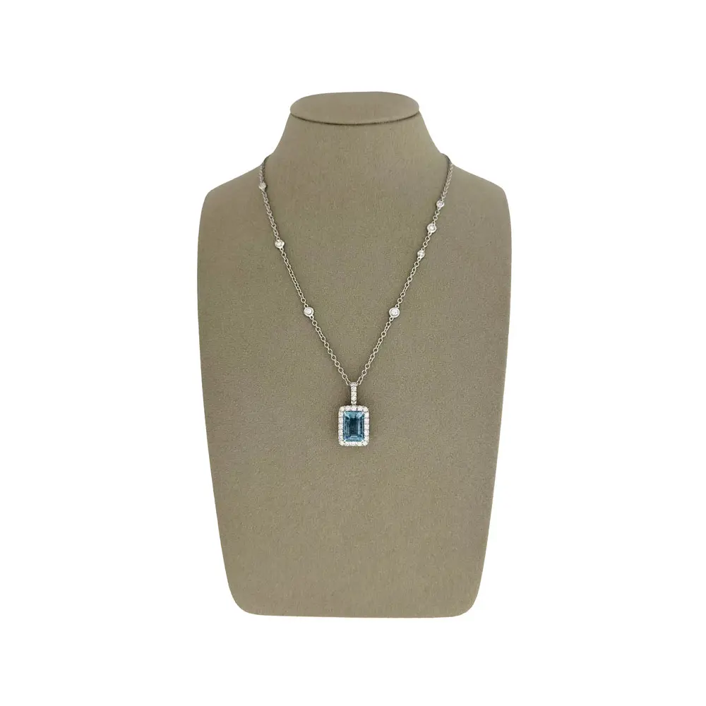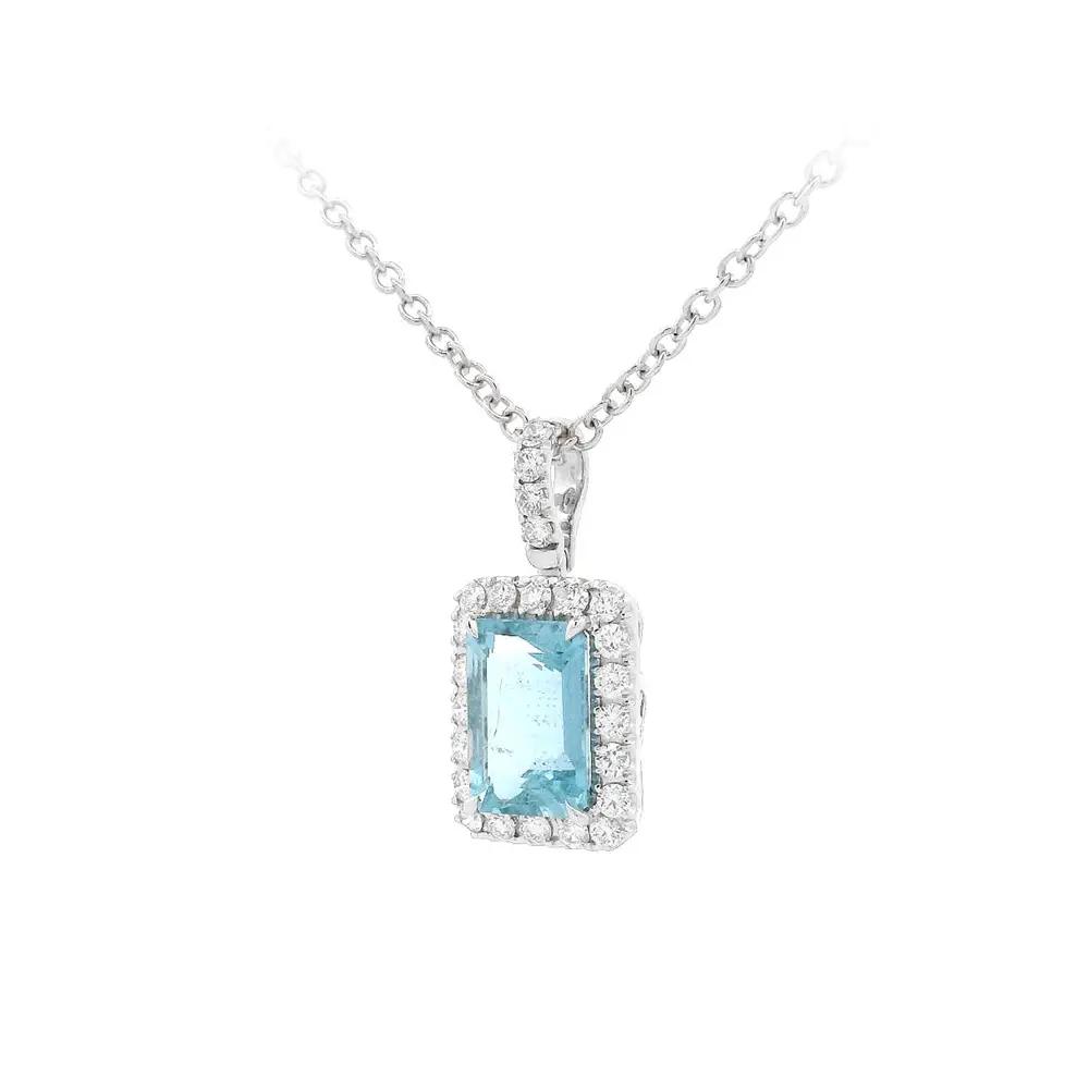 Exclusive Necklace with Aquamarine Surrounded by Diamonds