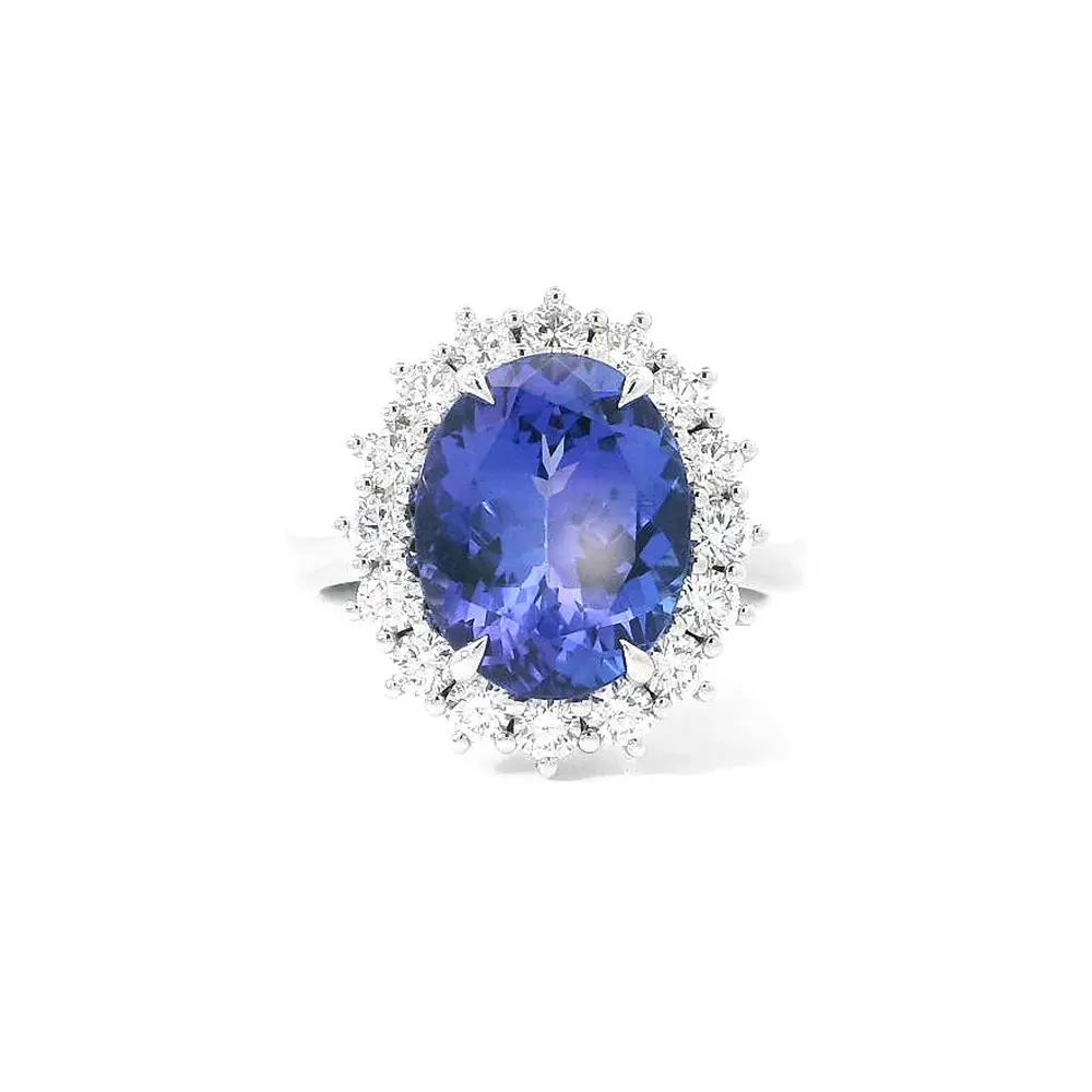 Exclusive White Gold Ring with Tanzanite and Diamond Sparkle