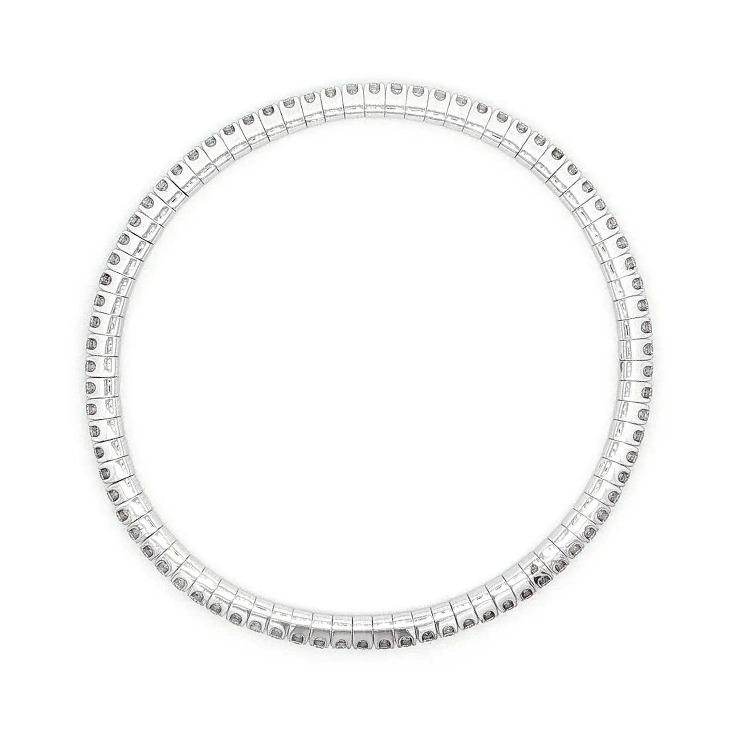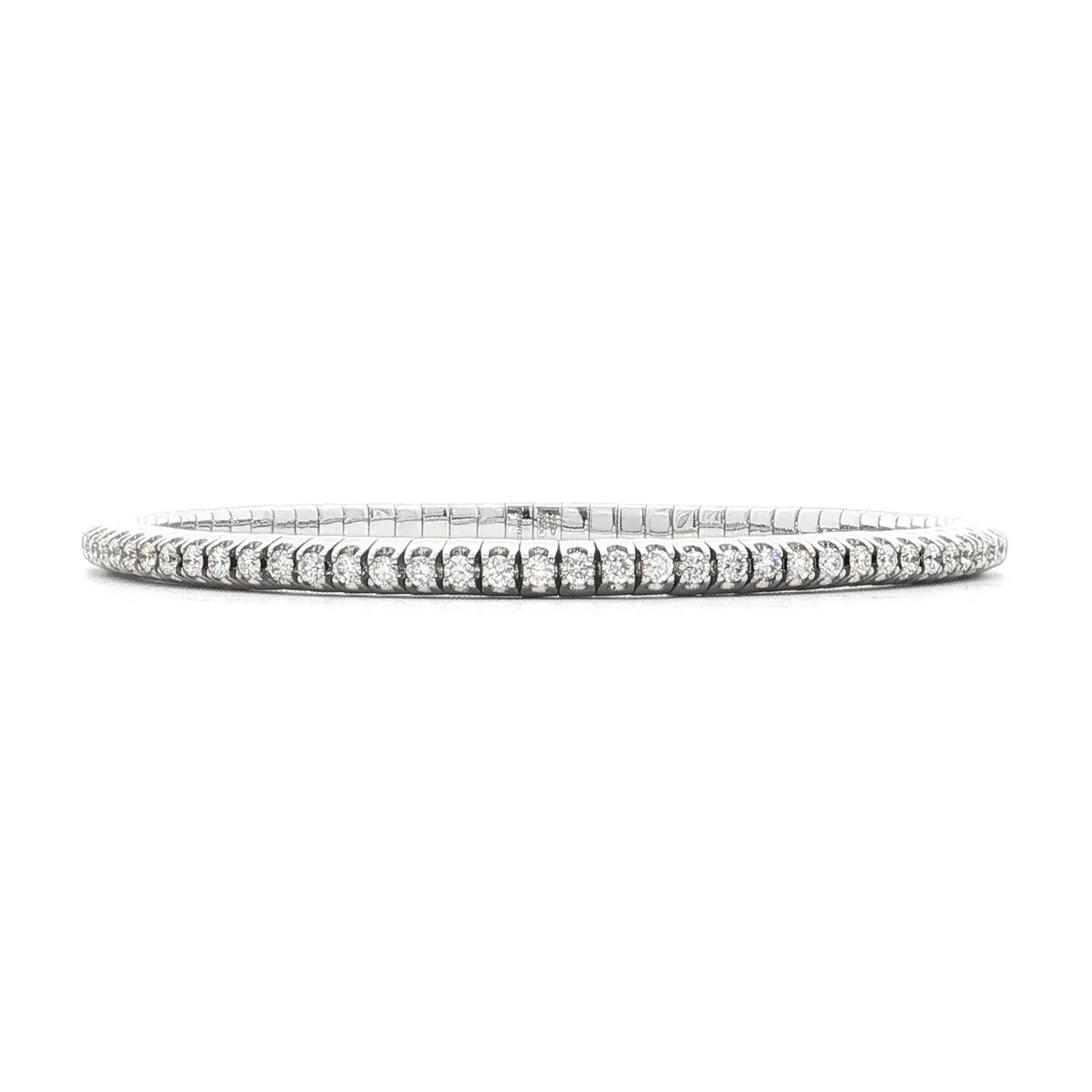 Crafted from 18K white gold, this bracelet blends timeless style with exceptional comfort. Perfect for both daily elegance and formal occasions, it’s a lightweight, radiant piece of jewelry designed to move with you while exuding subtle luxury.