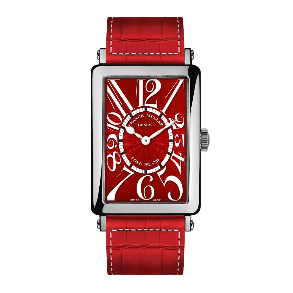 The Franck Muller Long Island 902 QZ Red PET AC embodies modern elegance with a unique charm. Part of the iconic Long Island collection, this model features a bold splash of color and Art Deco-inspired design that shines on any woman’s wrist.