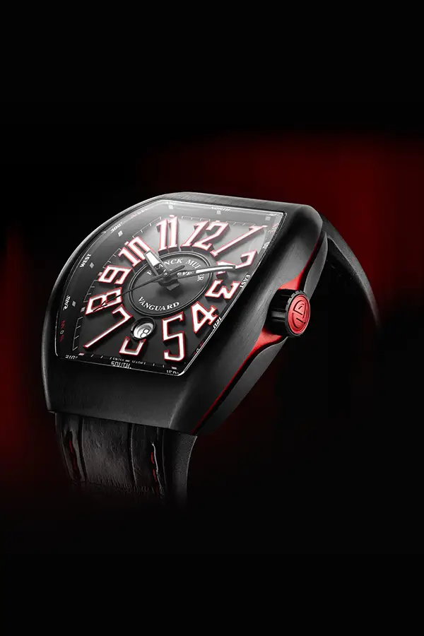 Vanguard is Franck Muller's modern and dynamic collection that combines sportiness with avant-garde design. It is characterised by a distinctive tonneau (barrel-shaped) silhouette, fluid lines and a sturdy case that looks massive yet elegant and ergonomic.
