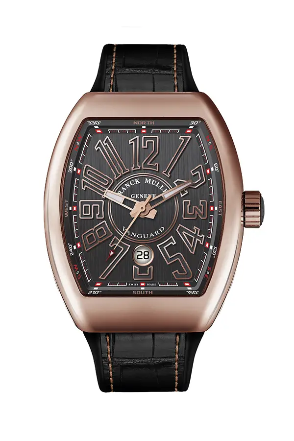 Vanguard is Franck Muller's modern and dynamic collection that combines sportiness with avant-garde design. It is characterised by a distinctive tonneau (barrel-shaped) silhouette, fluid lines and a sturdy case that looks massive yet elegant and ergonomic.