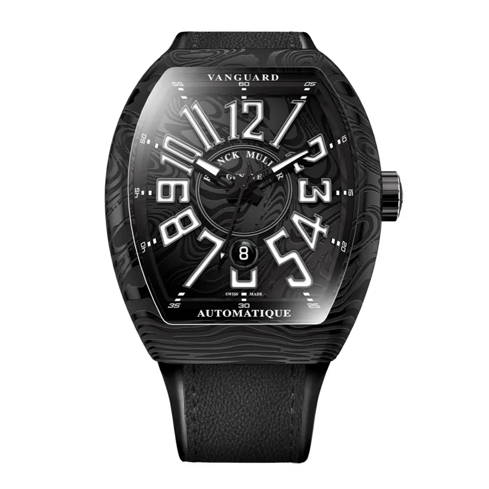Franck Muller Vanguard Damascus is a tribute to technical mastery and bold design. Both the case and the dial are crafted from Damascus steel, with its unmistakable organic pattern created through complex layering and heat treatment. Combined with black PVD finishing and hand-brushing, the watch achieves a unique character, making every piece one of a kind.
