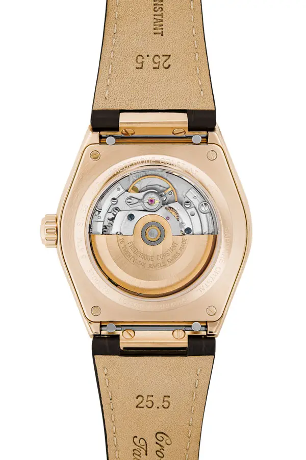 At the heart ticks the automatic movement FC-303, operating at 28,800 vibrations per hour, with a power reserve of approximately 38 hours and COSC certification, ensuring chronometric accuracy. A discreet date window at 3 o’clock enhances its practicality.