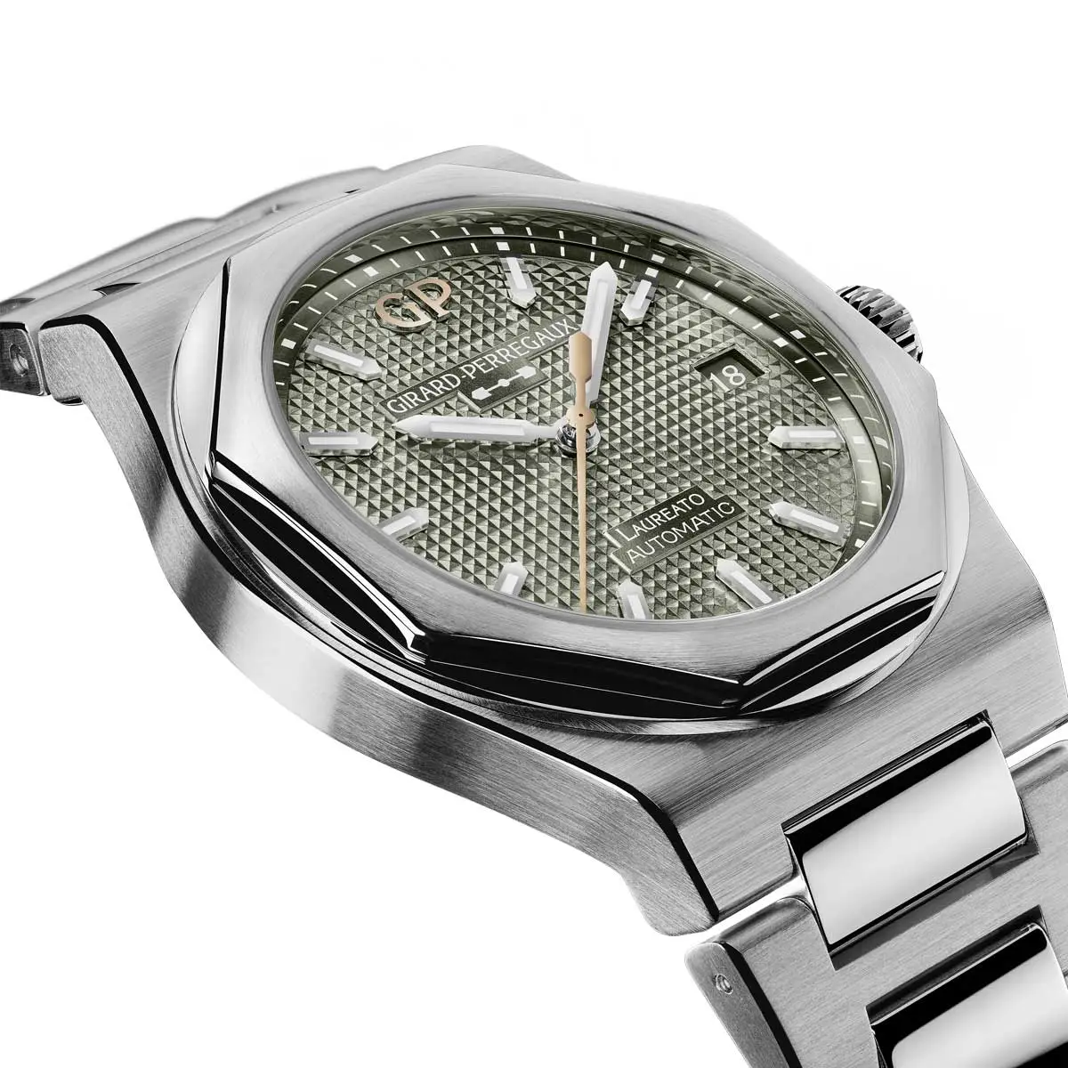 The Girard-Perregaux Laureato 38mm Sage Green is an elegant and modern embodiment of sporty classicism. Its round case with a diameter of 38 mm is made of high-quality stainless steel and protected by a durable sapphire crystal, ensuring perfect readability under all conditions.