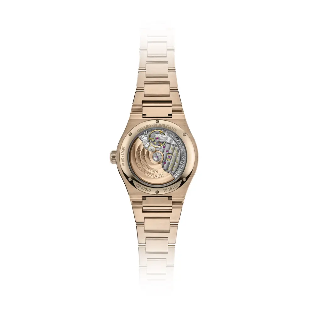 The Girard-Perregaux Laureato 42 mm (ref. 81010-52-3118-1CM) embodies the perfect balance between modern elegance and Swiss craftsmanship. The 42 mm 18K rose gold case with its signature octagonal bezel showcases a refined mix of polished and brushed finishes, expressing the timeless character of the Laureato line.