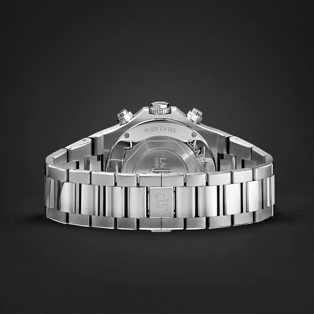 The Girard-Perregaux Laureato Chronograph is the perfect embodiment of sporty elegance and precise Swiss craftsmanship. Its round case with a diameter of 42 mm is made of high-quality stainless steel and protected by a durable sapphire crystal, ensuring excellent legibility and protection against damage.