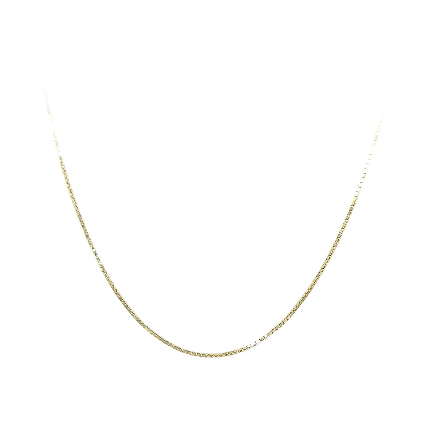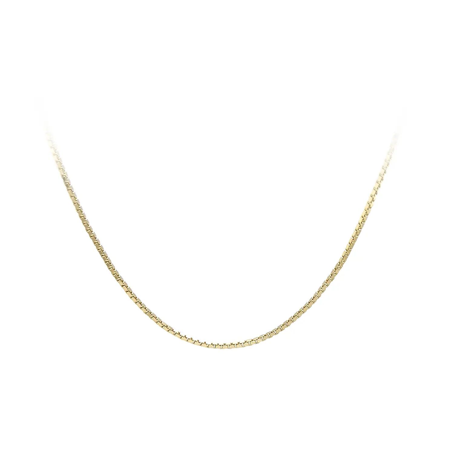 This gold Box chain features regular square links that create a clean, modern, and timeless look. With its delicate design and a 0.80 mm width, it appears subtle and elegant, making it an ideal choice for minimalist styling and everyday wear.