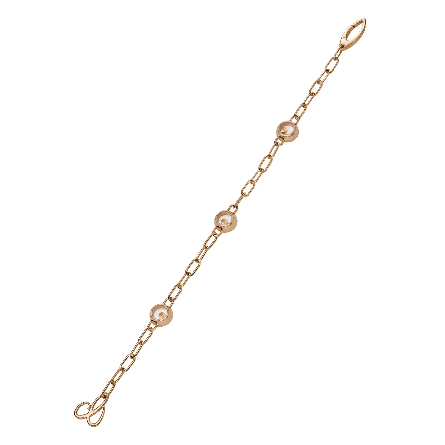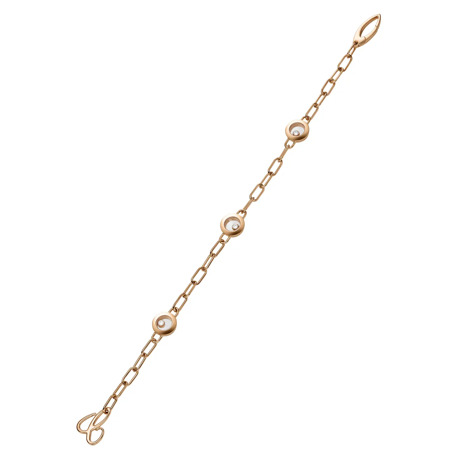 The Chopard Happy Diamonds Bracelet 85A117-5010 is a perfect expression of delicate elegance and timeless luxury, bearing the distinctive signature of Chopard. This jewel is crafted from 18 kt rose gold (750/1000) with a perfectly polished finish, highlighting its sophisticated charm.