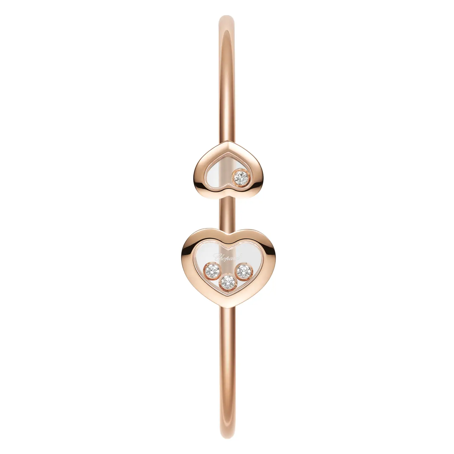 This refined bracelet from the Happy Diamonds Icons collection embodies Chopard’s signature harmony of lightness, movement, and elegance. Crafted in 18 k rose gold, it is adorned with four freely moving diamonds totaling approximately 0.20 ct, each captured between two sapphire crystals. As they dance with every motion, they reflect the joy, freedom, and femininity at the heart of Chopard’s design philosophy.