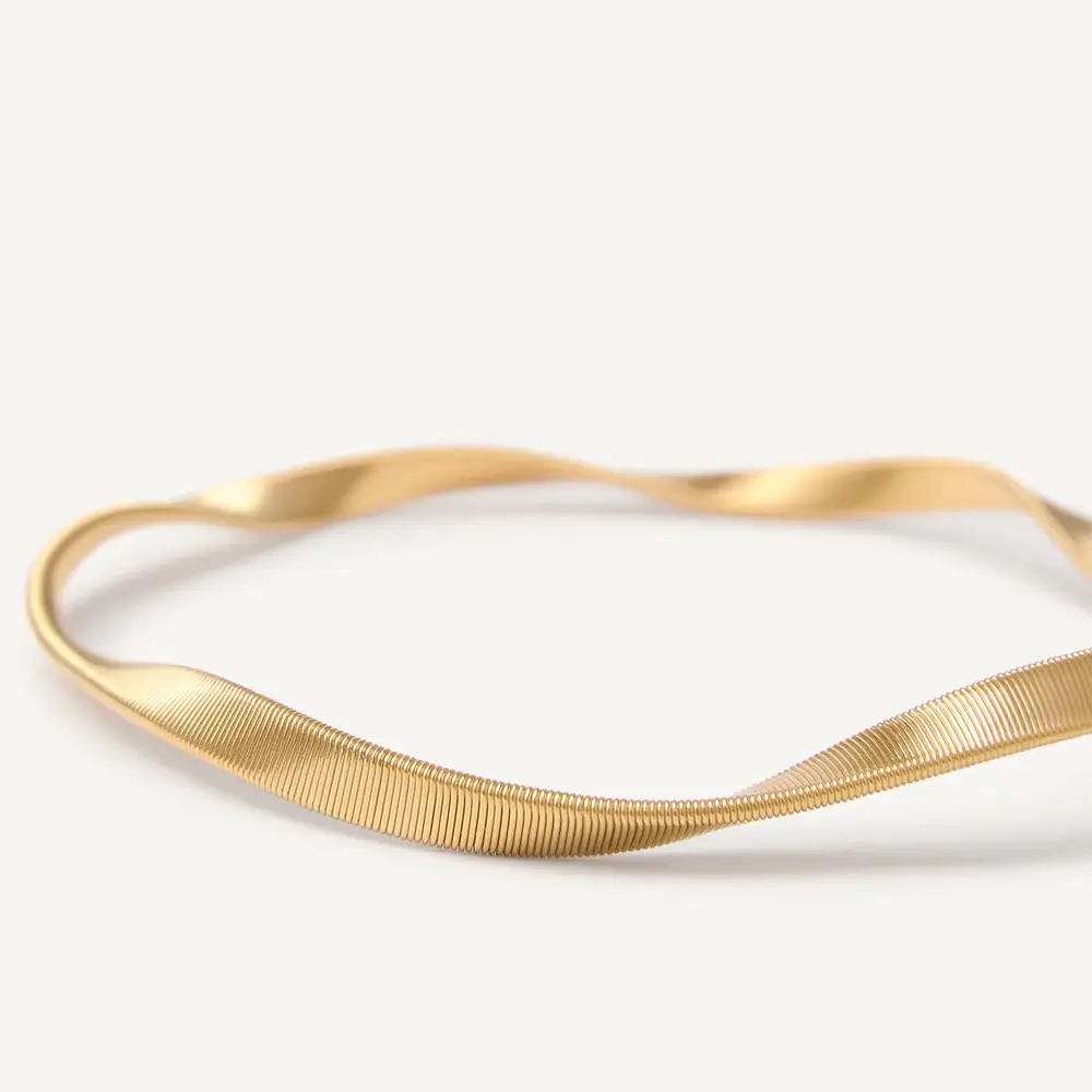 Each piece is crafted from 18kt gold and adorned with the signature hand-twisted coil technique, a hallmark of Marco Bicego. This detail creates subtle movement, texture, and depth, making the jewellery feel alive and unique. Marrakech includes necklaces, bracelets, earrings, and rings, often enhanced with diamonds for added brilliance.