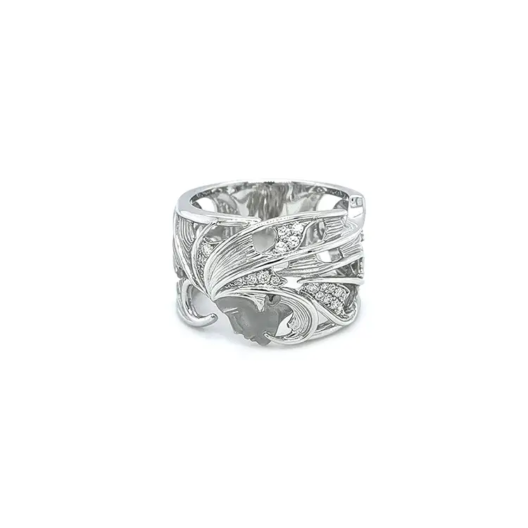 The Carrera y Carrera Atlantis Sirena Aire gold ring is a fascinating jewel inspired by the mysterious beauty of the sea and feminine delicacy. Crafted from 18kt white gold (750/1000), it features a sophisticated interplay of polished and matte surfaces, creating a refined dance of light and shadow. With a width of 13.85 mm and height of 4.20 mm, it stands out as a statement piece that instantly draws attention.