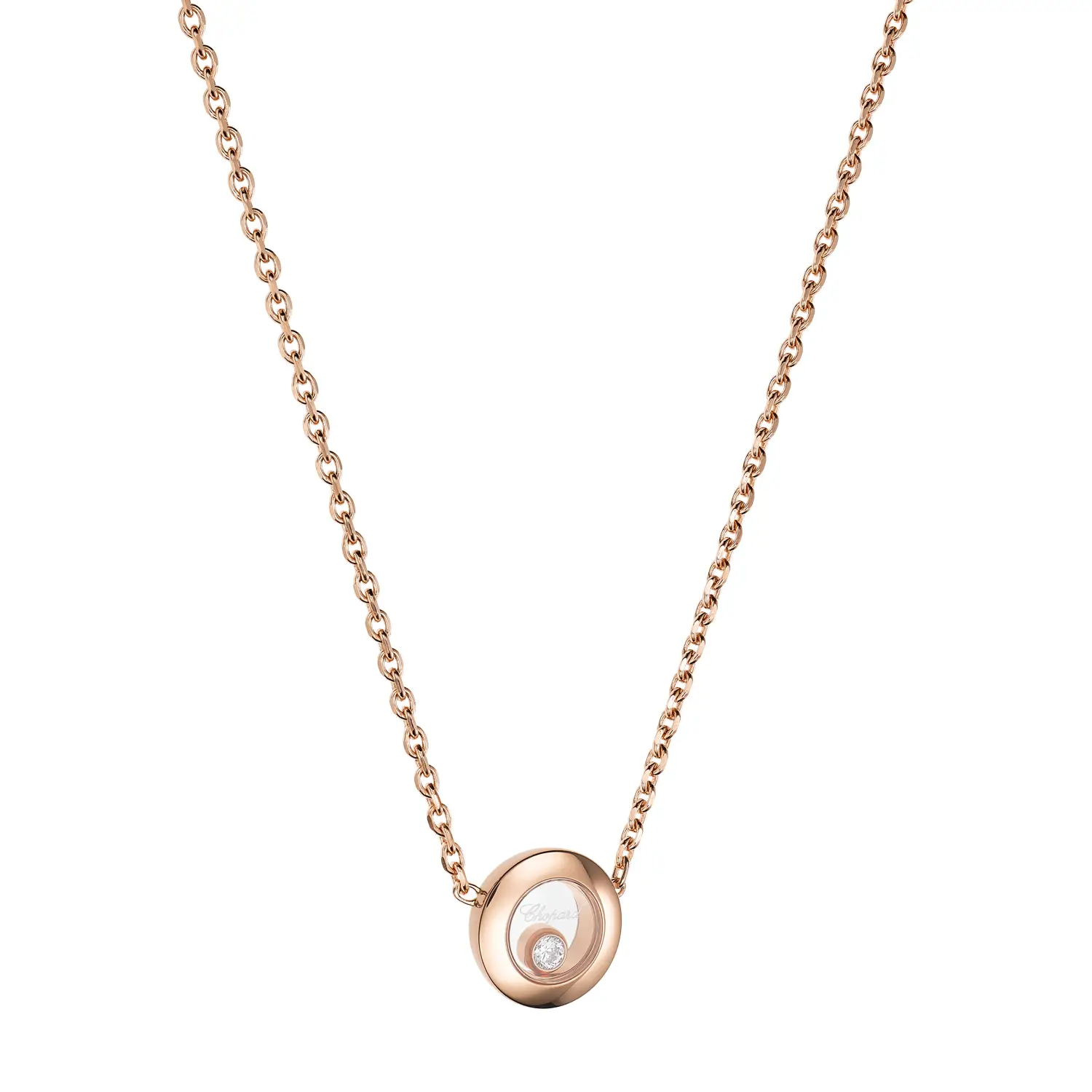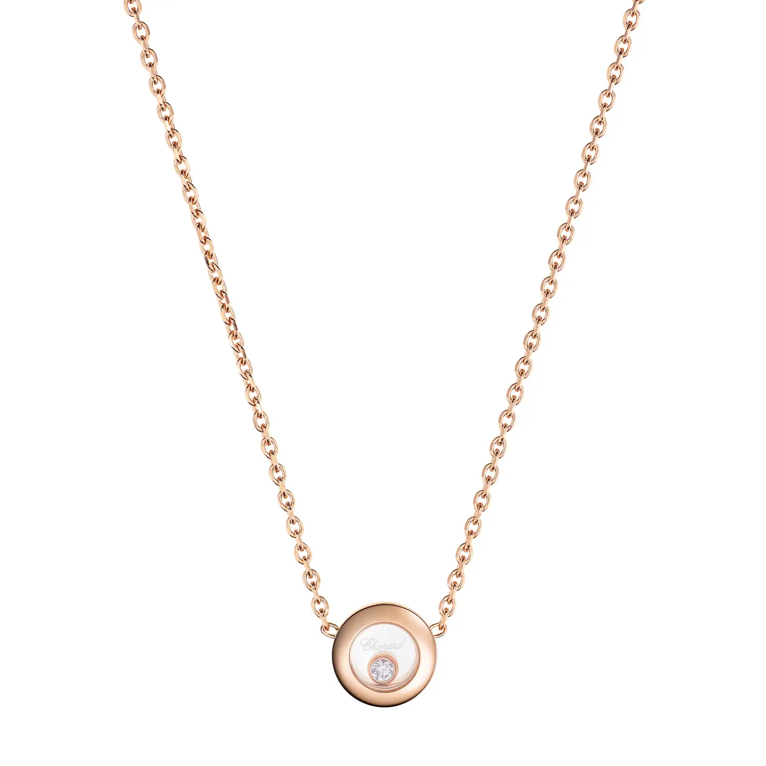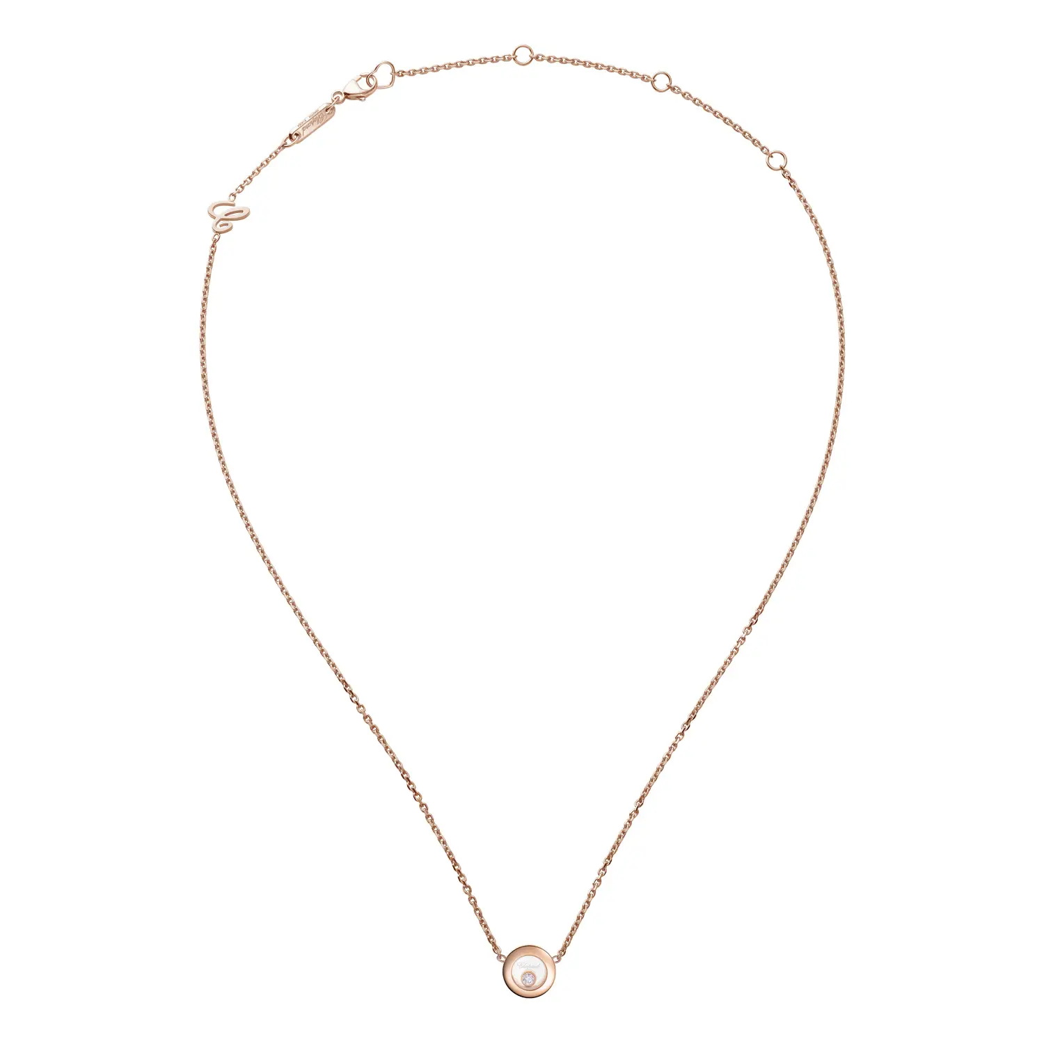 This elegant necklace from the Happy Diamonds Icons collection is a tribute to joy, freedom, and timeless feminine elegance. Crafted in 18 k rose gold and featuring Chopard’s iconic freely moving diamond set between two sapphire crystals, it creates a delicate dance of light with every motion. This signature design embodies sophistication, lightness, and positive energy.