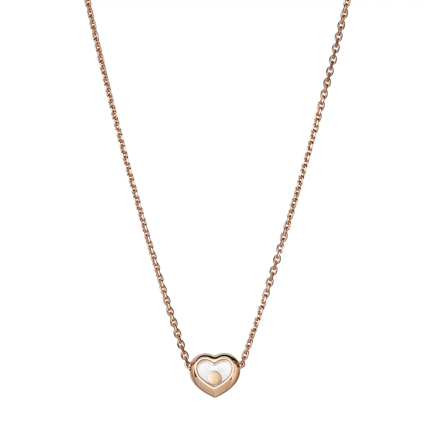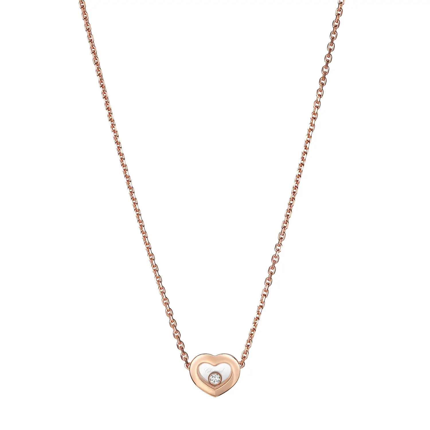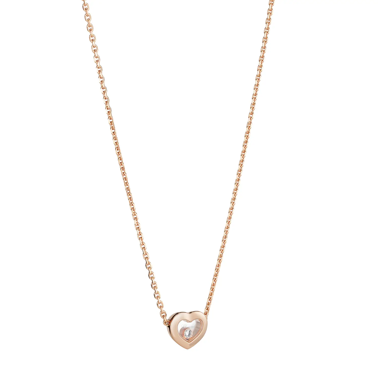 The Chopard Happy Diamonds Icons 81A054-5001 necklace embodies lightness, brilliance, and movement — the defining values of the Happy Diamonds collection. Crafted from ethical 18-carat rose gold, it features a freely moving 0.05 ct diamond enclosed between two sapphire crystals, creating a graceful dance of light with every motion.