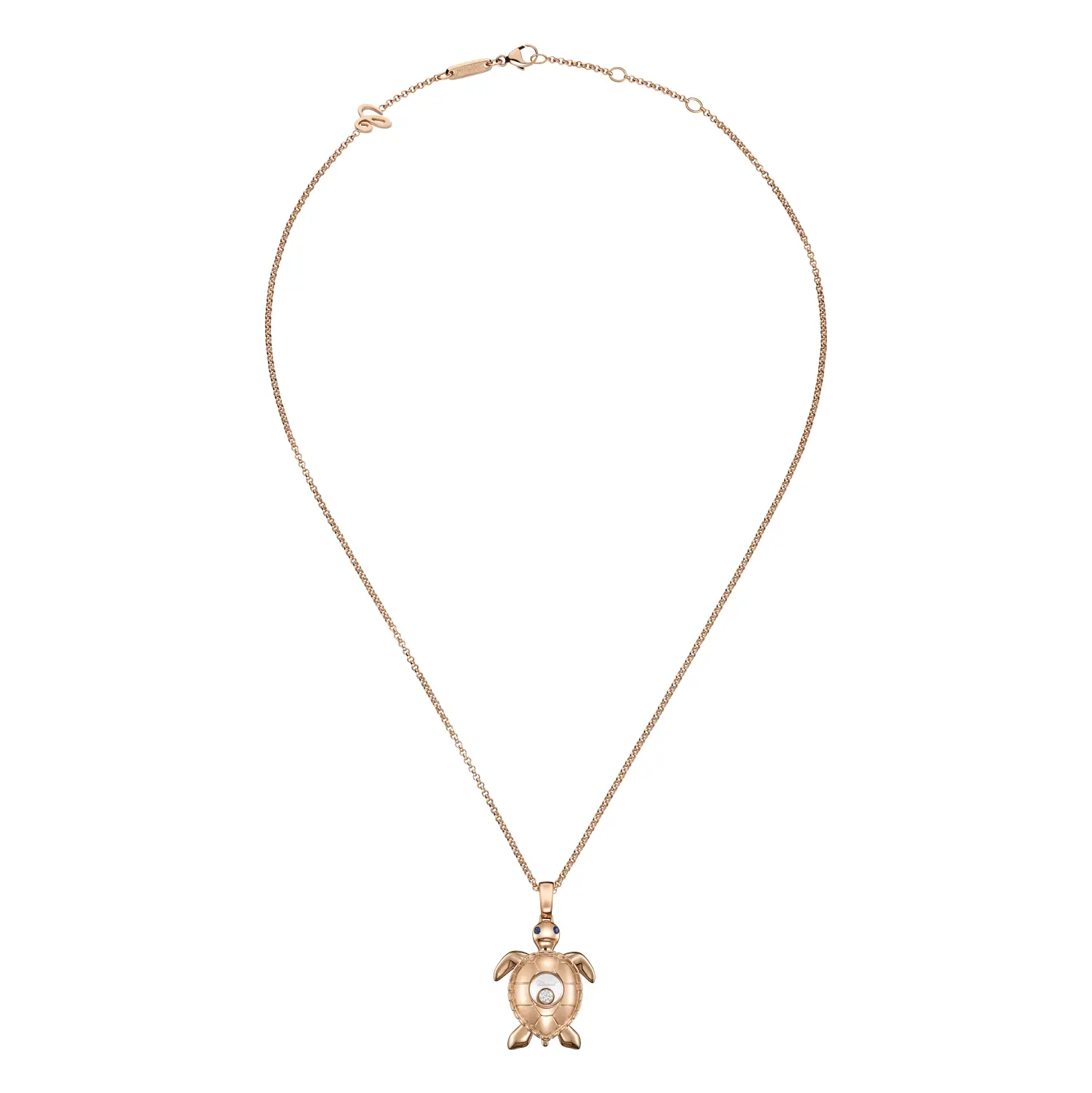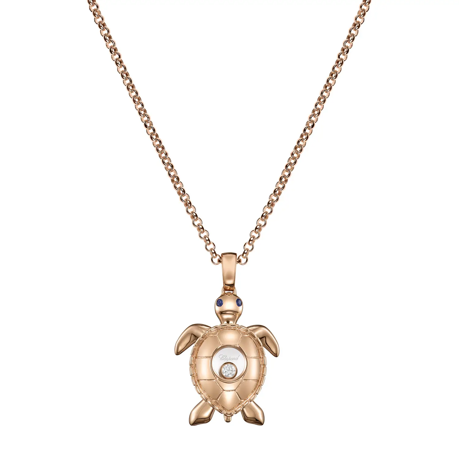 The Chopard Happy Diamonds Turtle 79A187-5001 pendant embodies luck, longevity, and elegance, uniting the playful spirit of Happy Diamonds with Chopard’s refined artistry. Crafted from ethical 18-carat rose gold, it features a freely moving diamond enclosed between two sapphire crystals, capturing the light with every graceful motion.