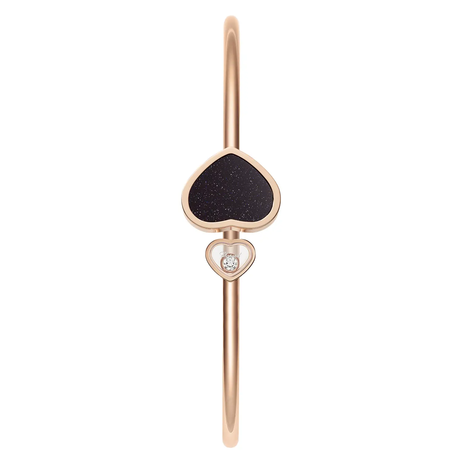 The Chopard Happy Hearts 857482-5513 bracelet embodies elegance, femininity, and joyful sophistication – the essence of the Happy Hearts collection. Crafted from ethical 18-carat rose gold, it features a blue aventurine heart shimmering like a night sky, alongside a freely moving 0.05 ct diamond. The contrast between warm gold and deep blue stone creates a striking yet perfectly balanced look.