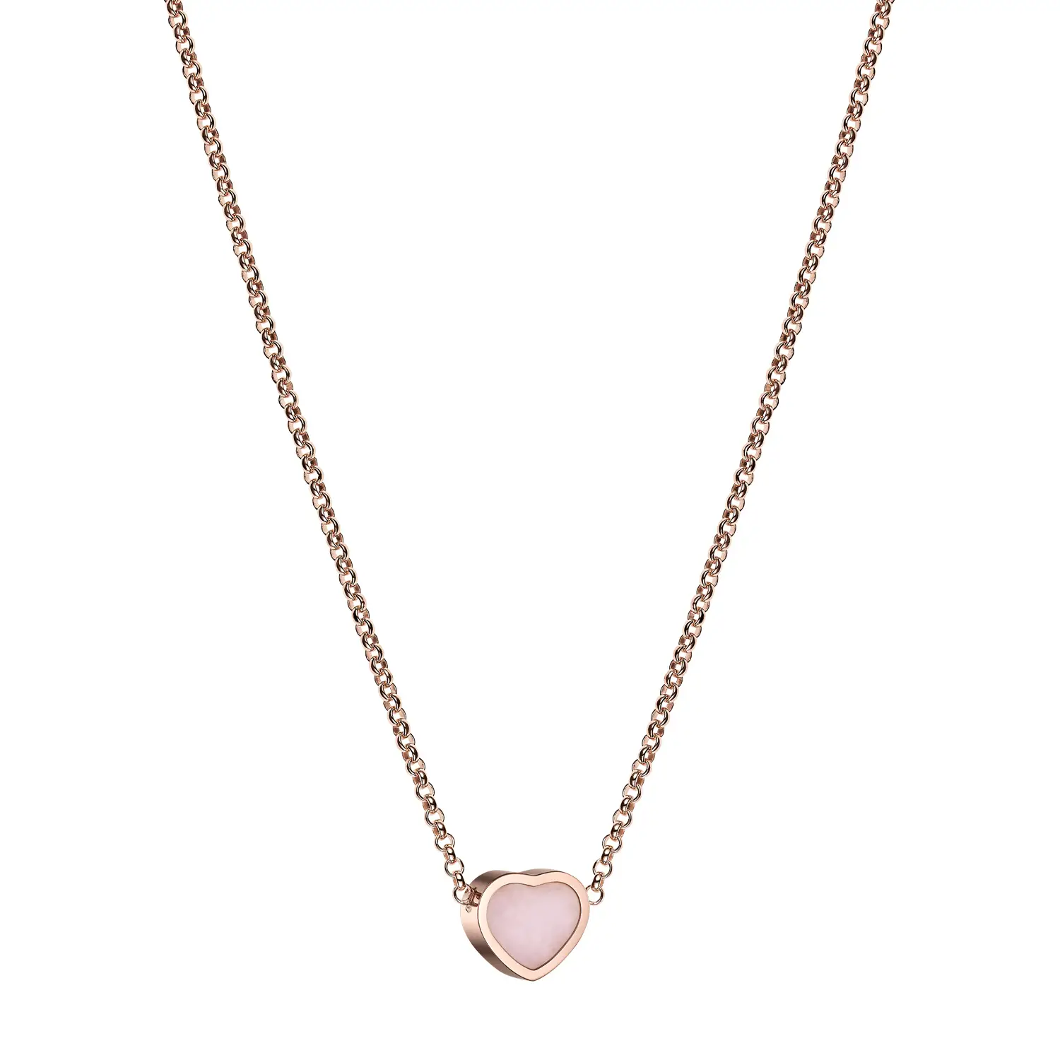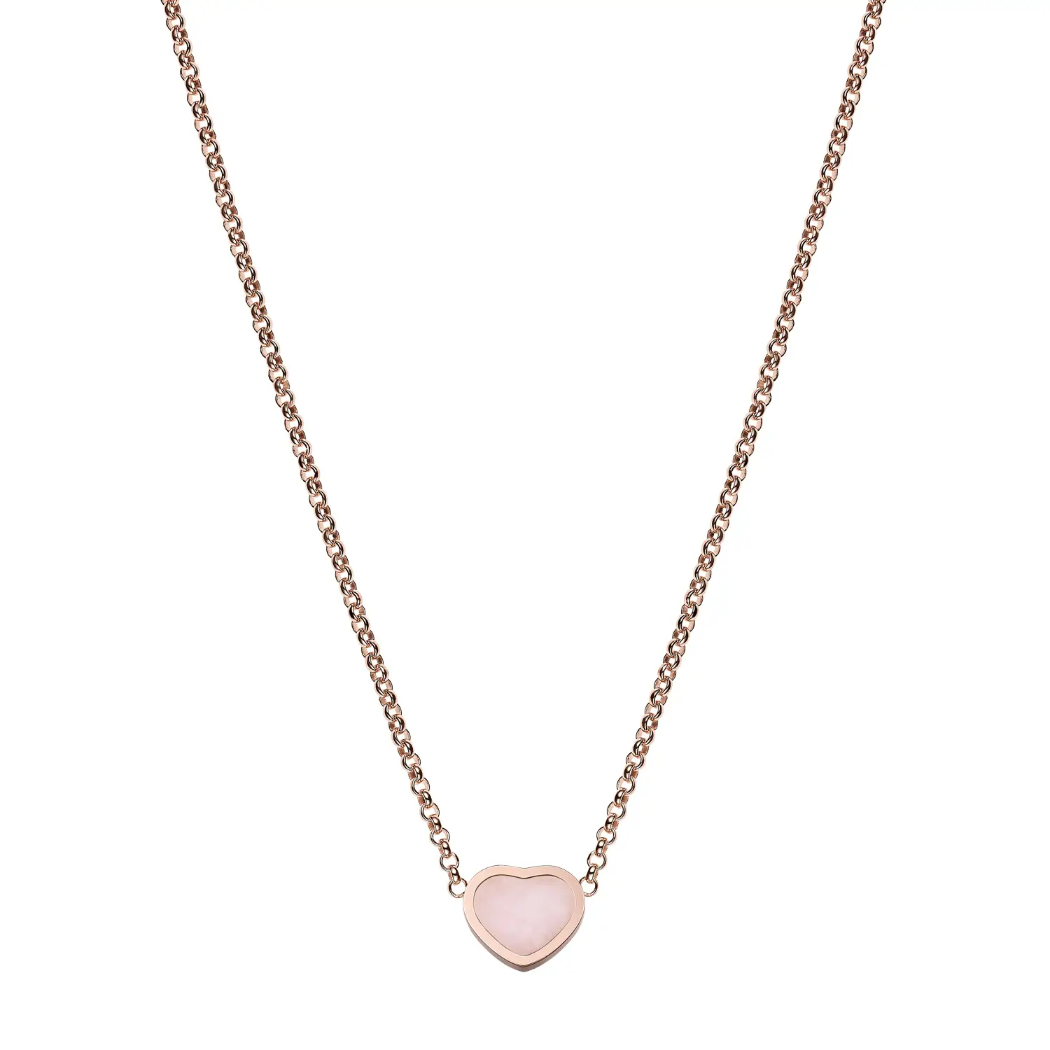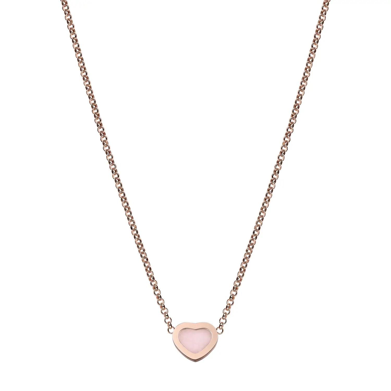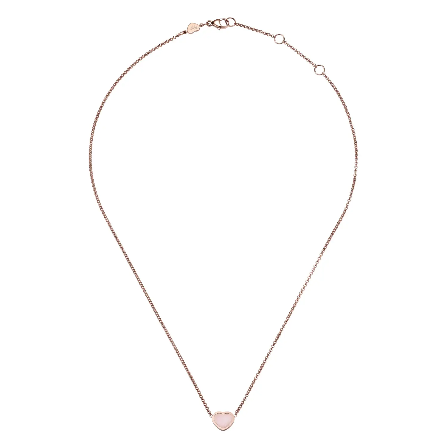 The Chopard My Happy Hearts 81A086-5620 necklace offers a delicate, modern interpretation of love, joy, and freedom — the core values of the My Happy Hearts collection. Crafted from ethical 18-carat rose gold, it features a pink opal heart, a signature Chopard motif symbolizing tenderness and optimism. Its soft hue and refined proportions make it a timeless expression of feminine grace.