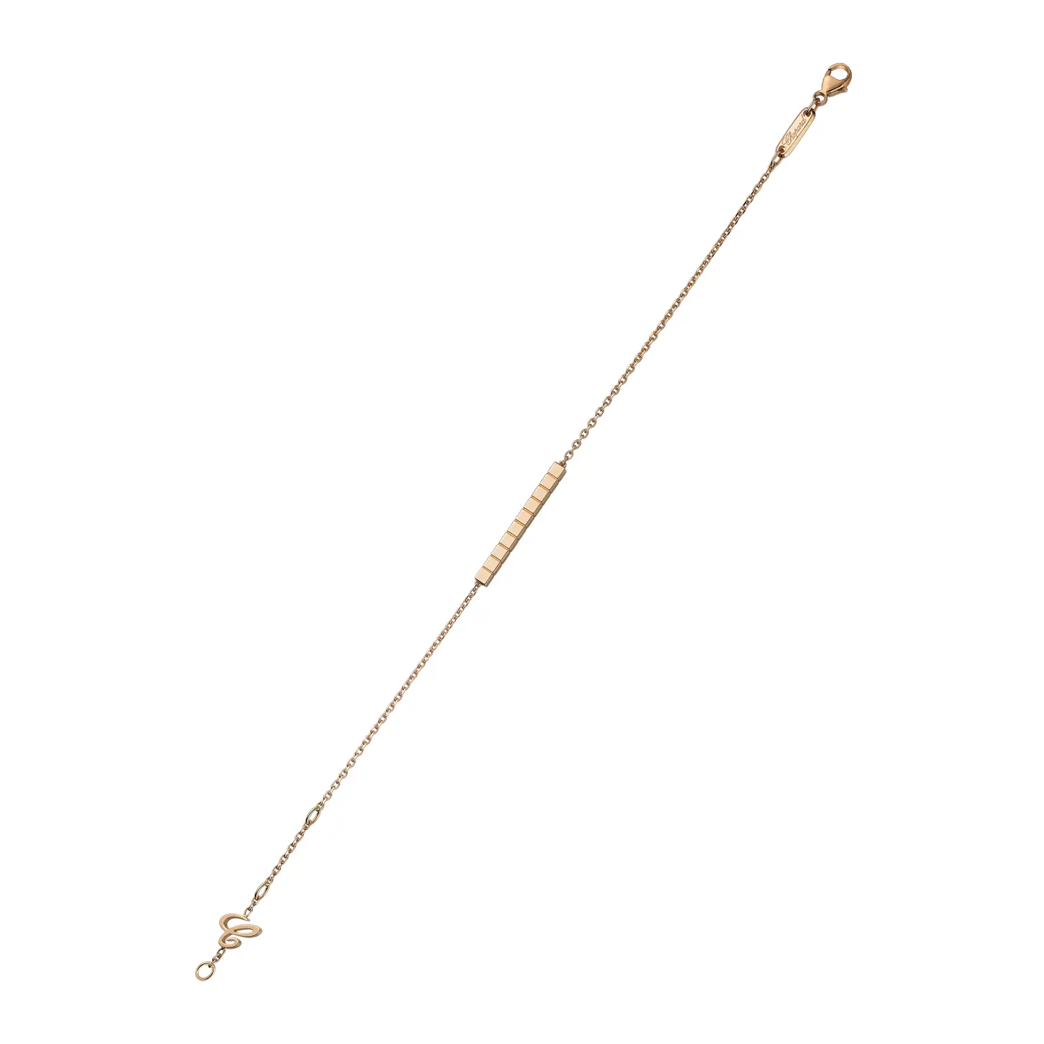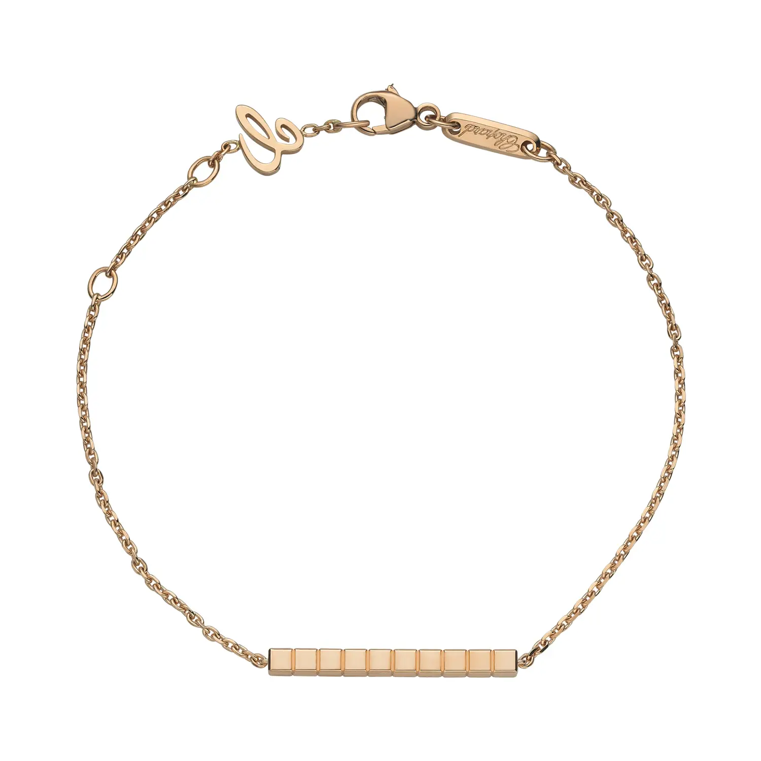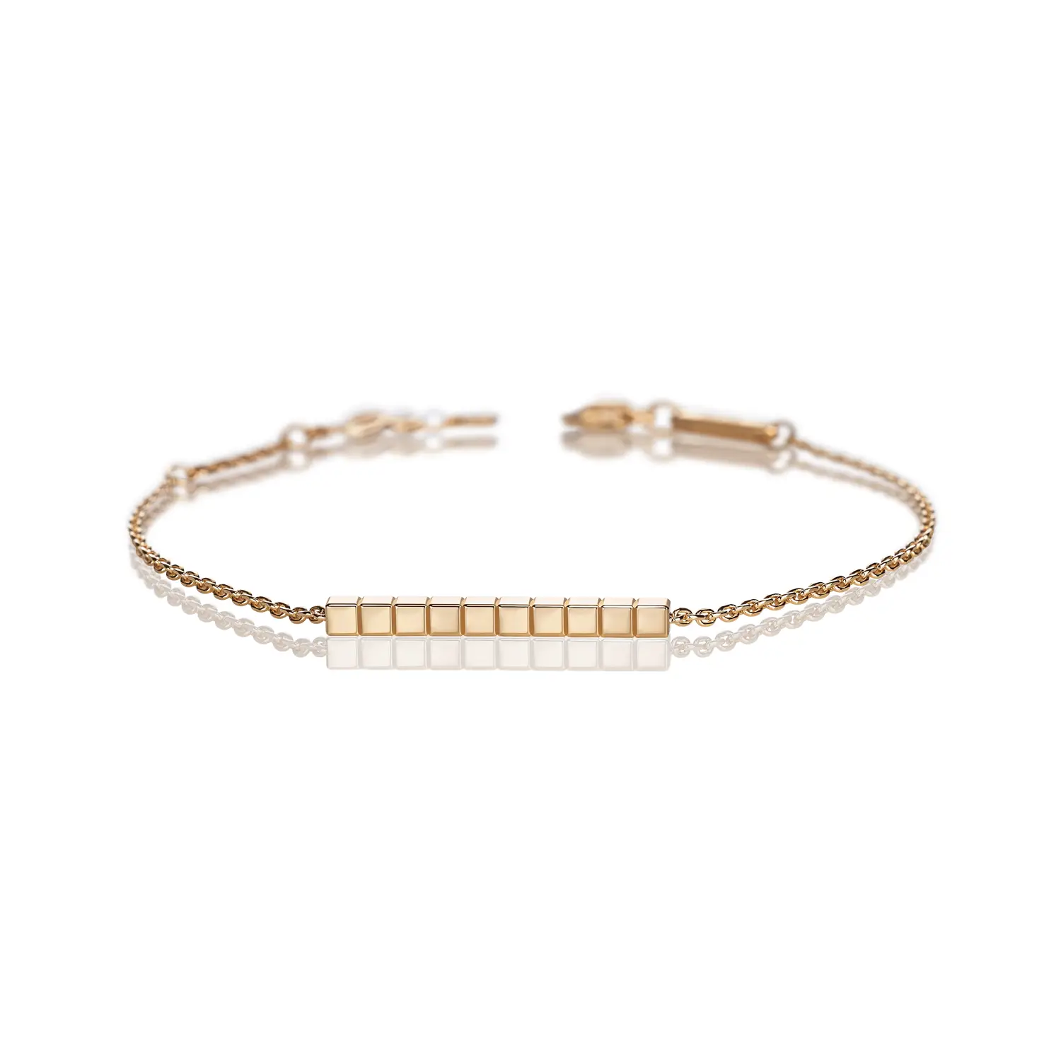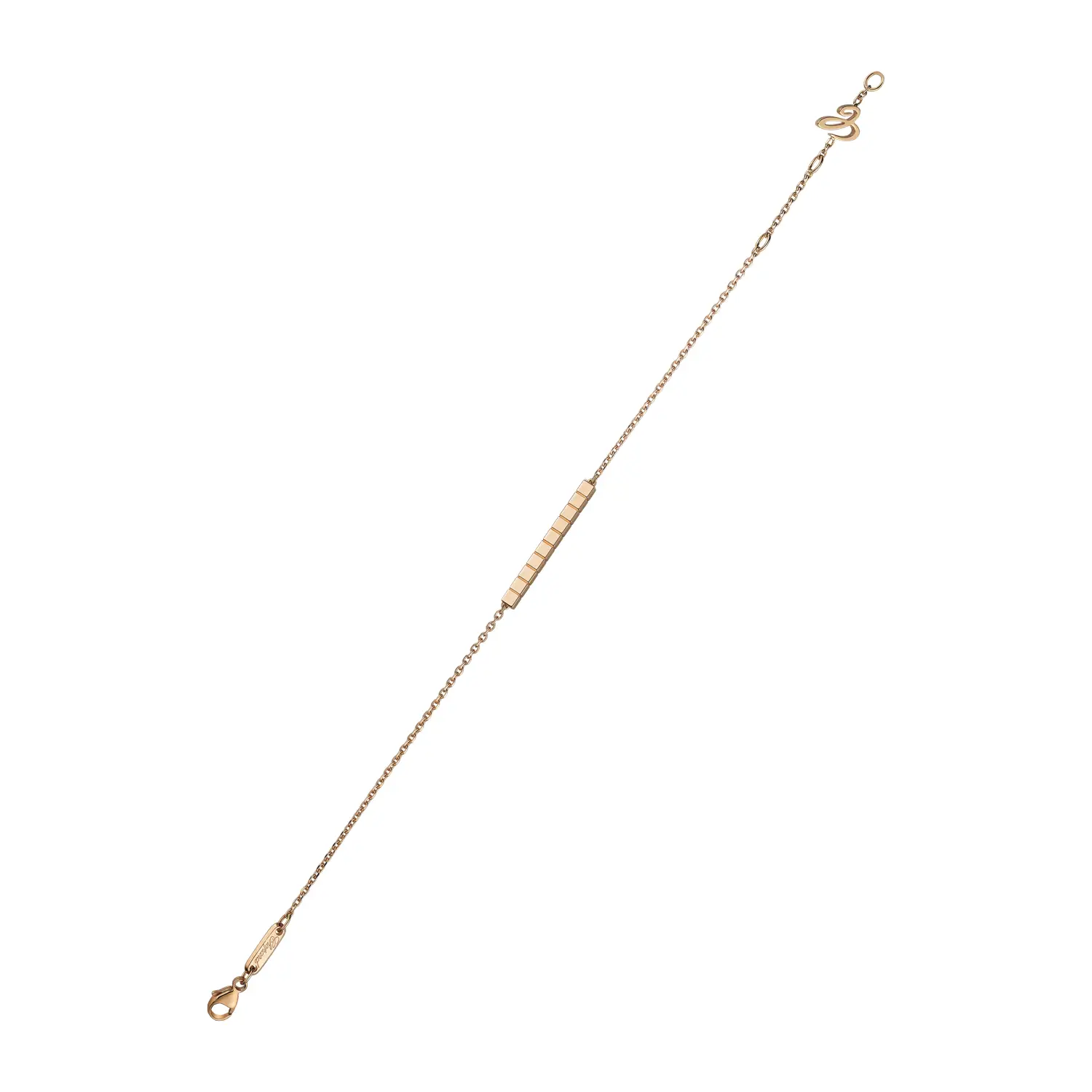 This contemporary bracelet from the Ice Cube collection embodies architectural aesthetics, minimalism, and refined luxury – hallmarks of the Chopard style. Crafted in 18 k ethical rose gold, its geometric cube design captures and reflects light with every movement, creating a sophisticated play of brilliance.
