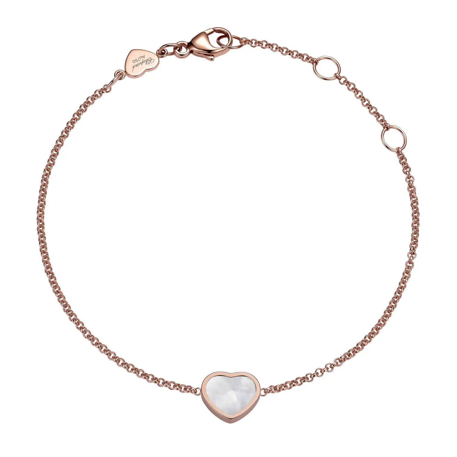 The Chopard My Happy Hearts 85A086-5031 bracelet embodies femininity, softness, and timeless elegance — the hallmarks of the My Happy Hearts collection. Crafted from ethical 18-carat rose gold, it features a mother-of-pearl heart, symbolizing purity, love, and harmony. This signature Chopard motif radiates gentle light, making it perfect for both everyday wear and special occasions.